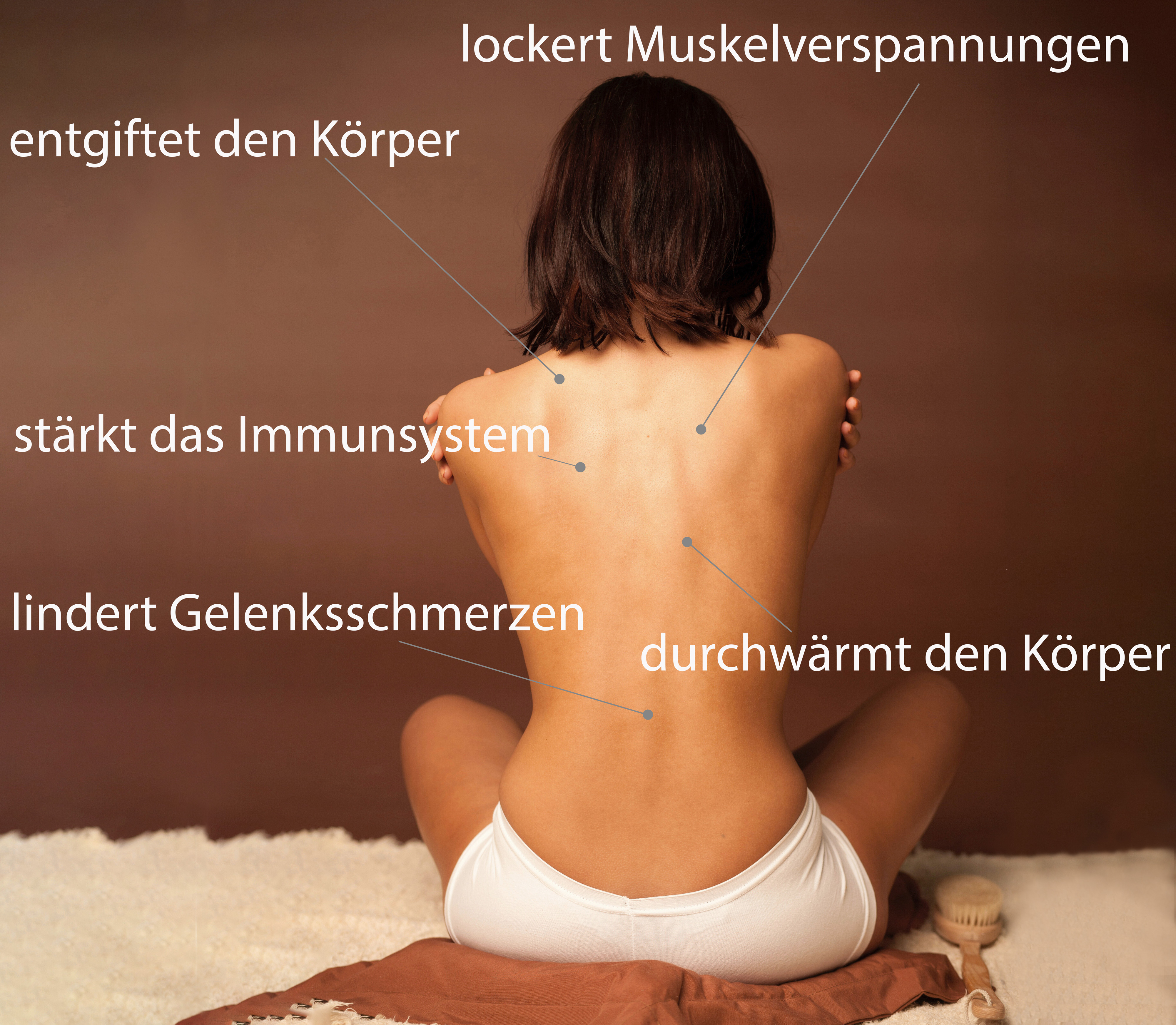 Die Körperkerntemperatur erhöht sich dabei langsam und schonend. Der Stoffwechsel wird angeregt, die Durchblutung von Organen und Gewebe erhöht.