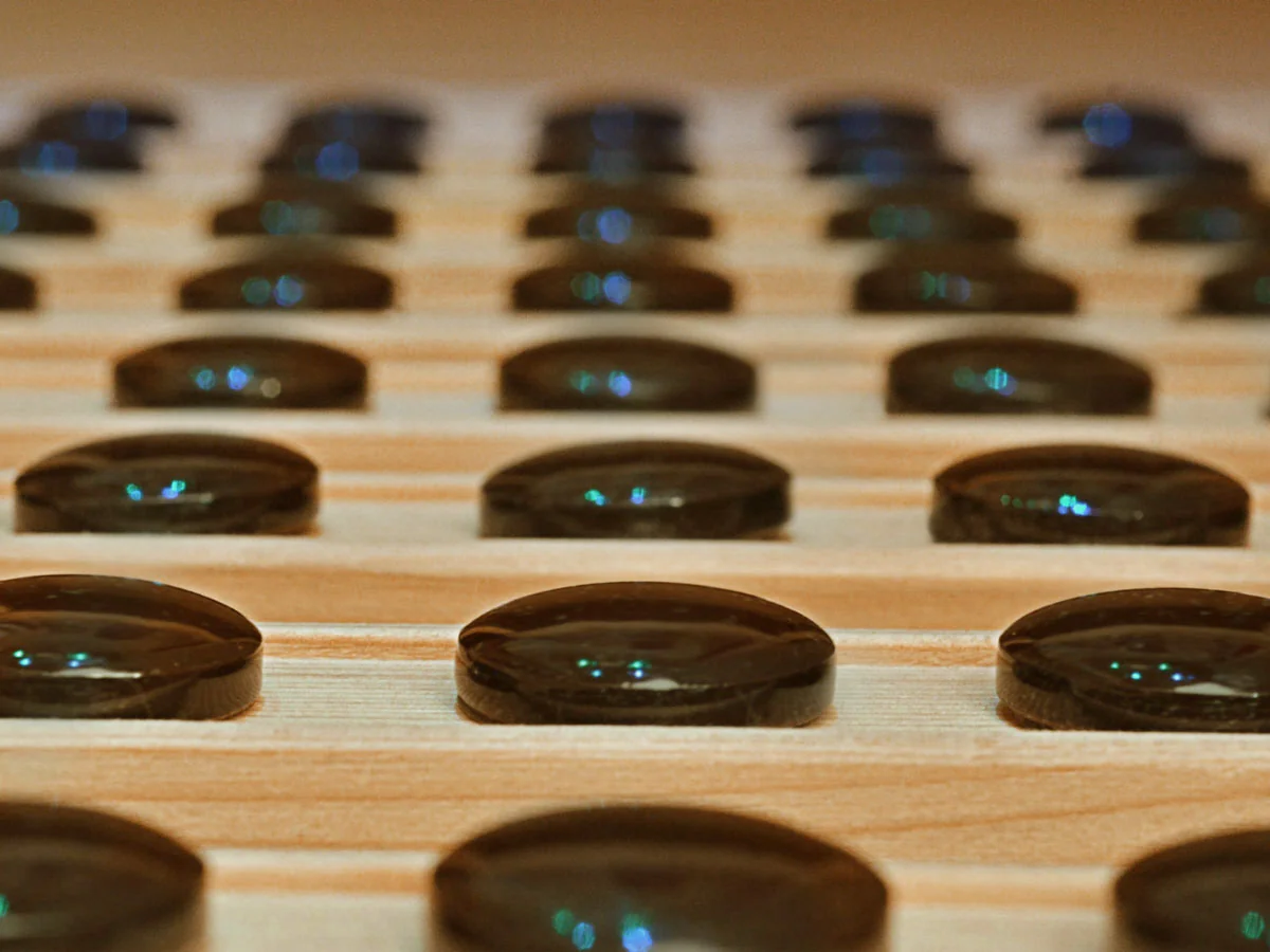 Sie besteht aus geschliffenen synthetischen Obsidianen, die von einem hochwertigen Karbonstrahler, der sich unter den Steinen befindet, erwärmt werden.