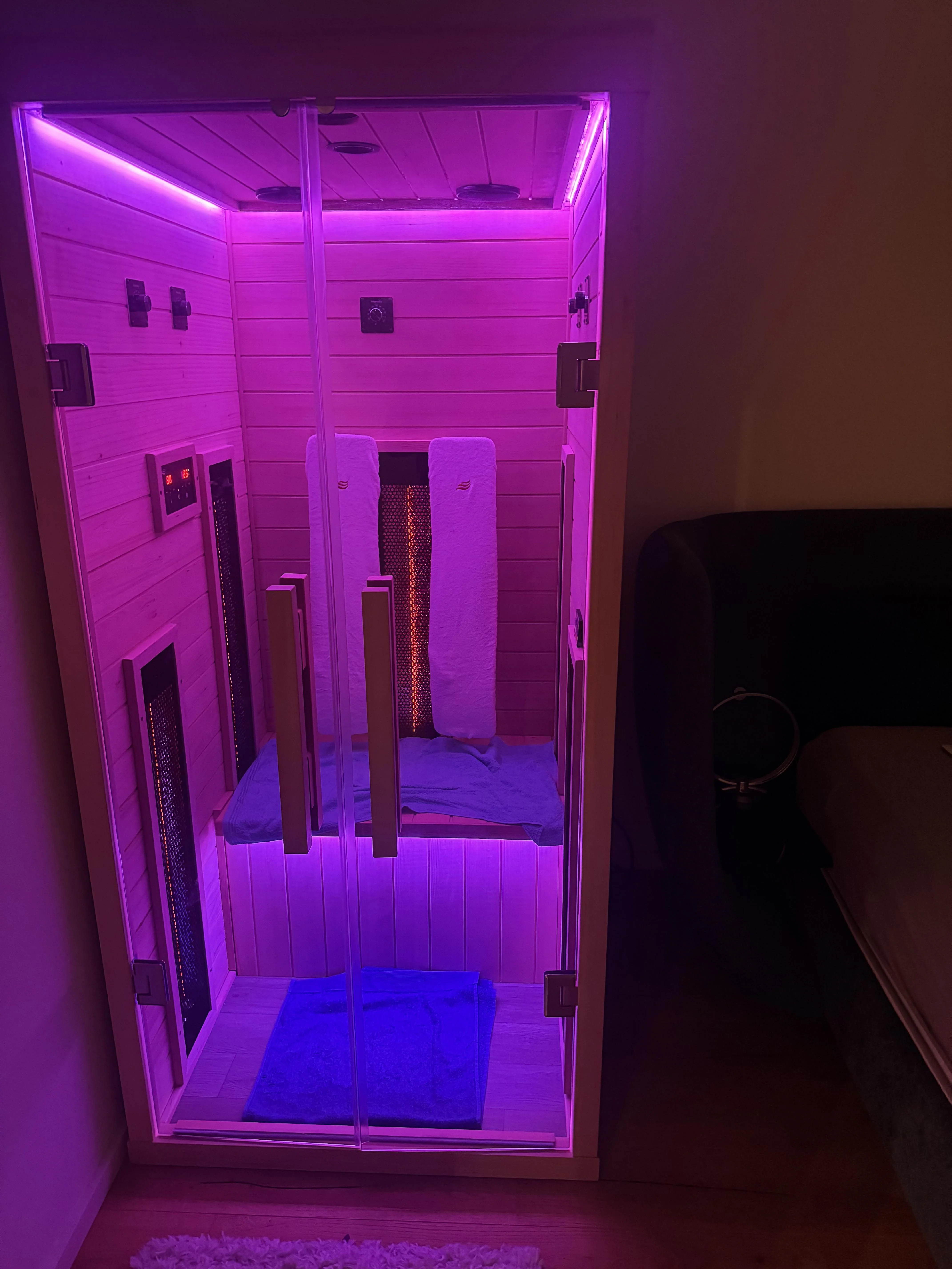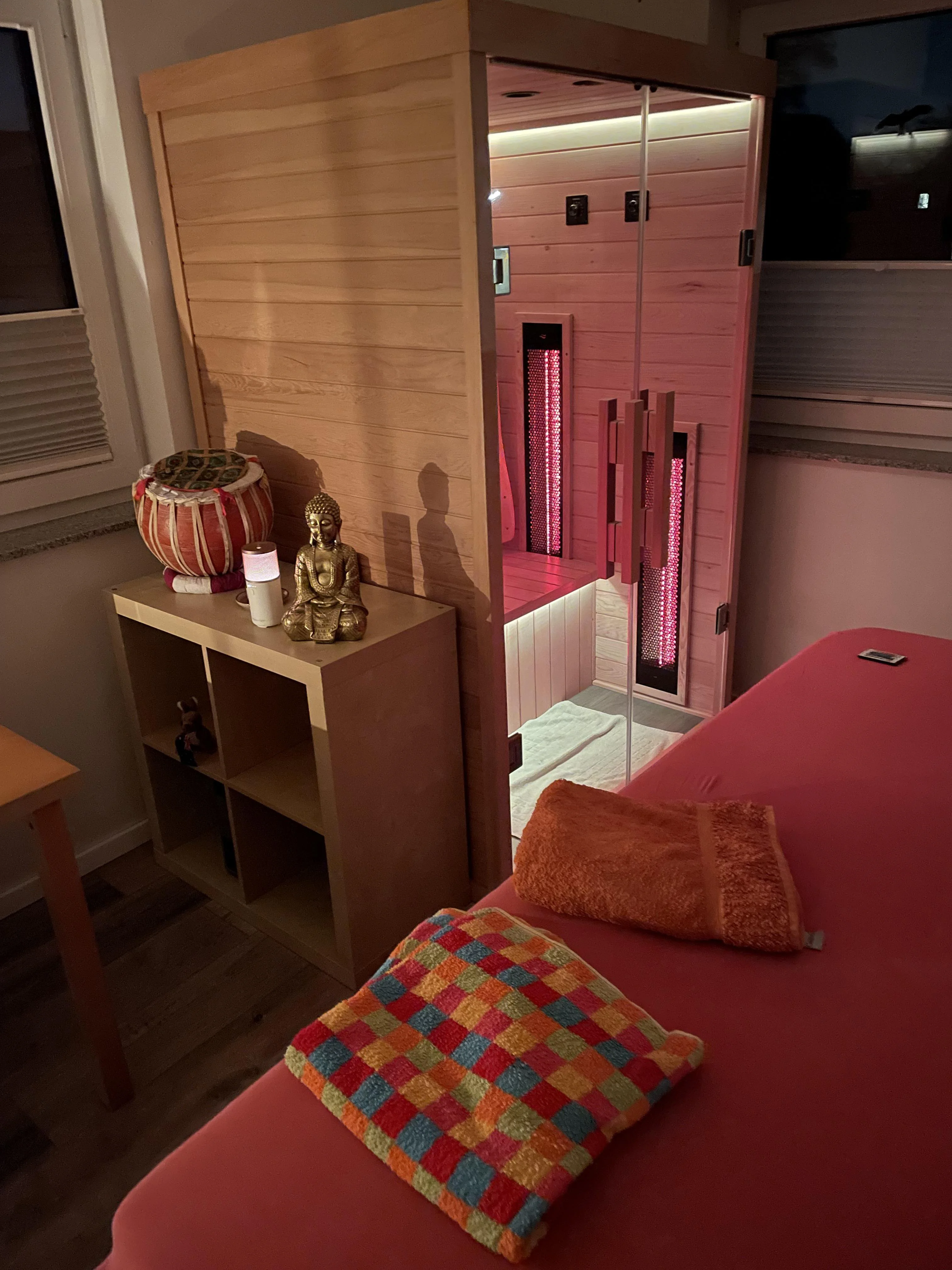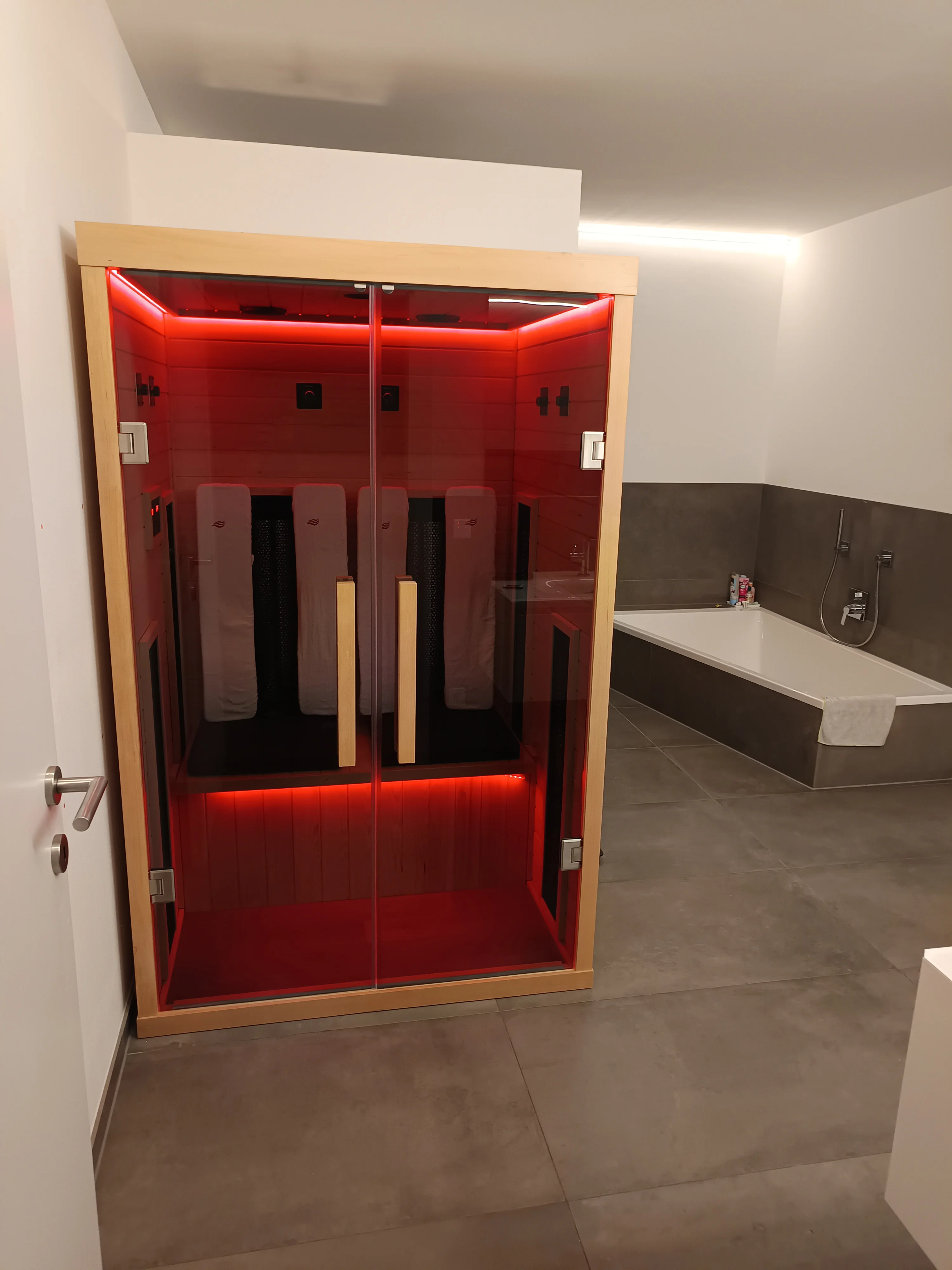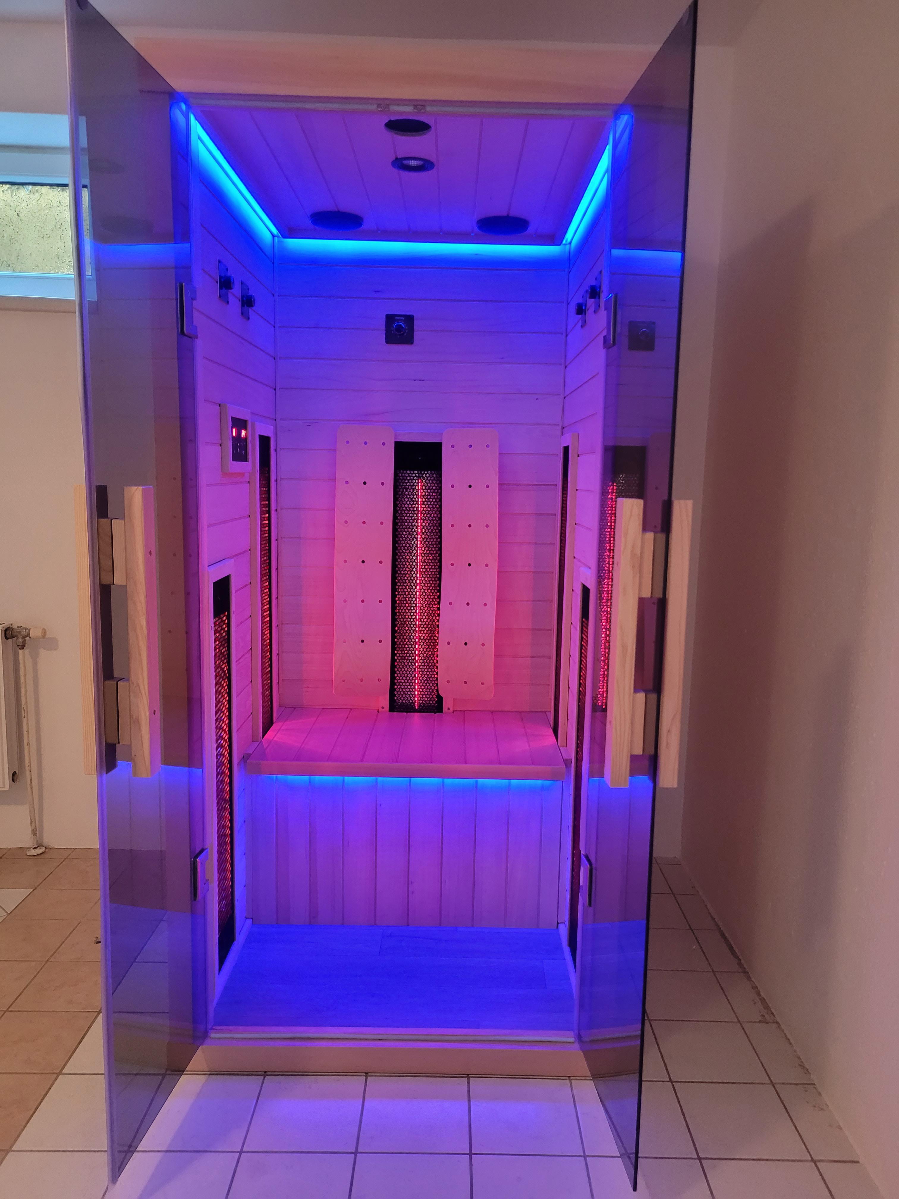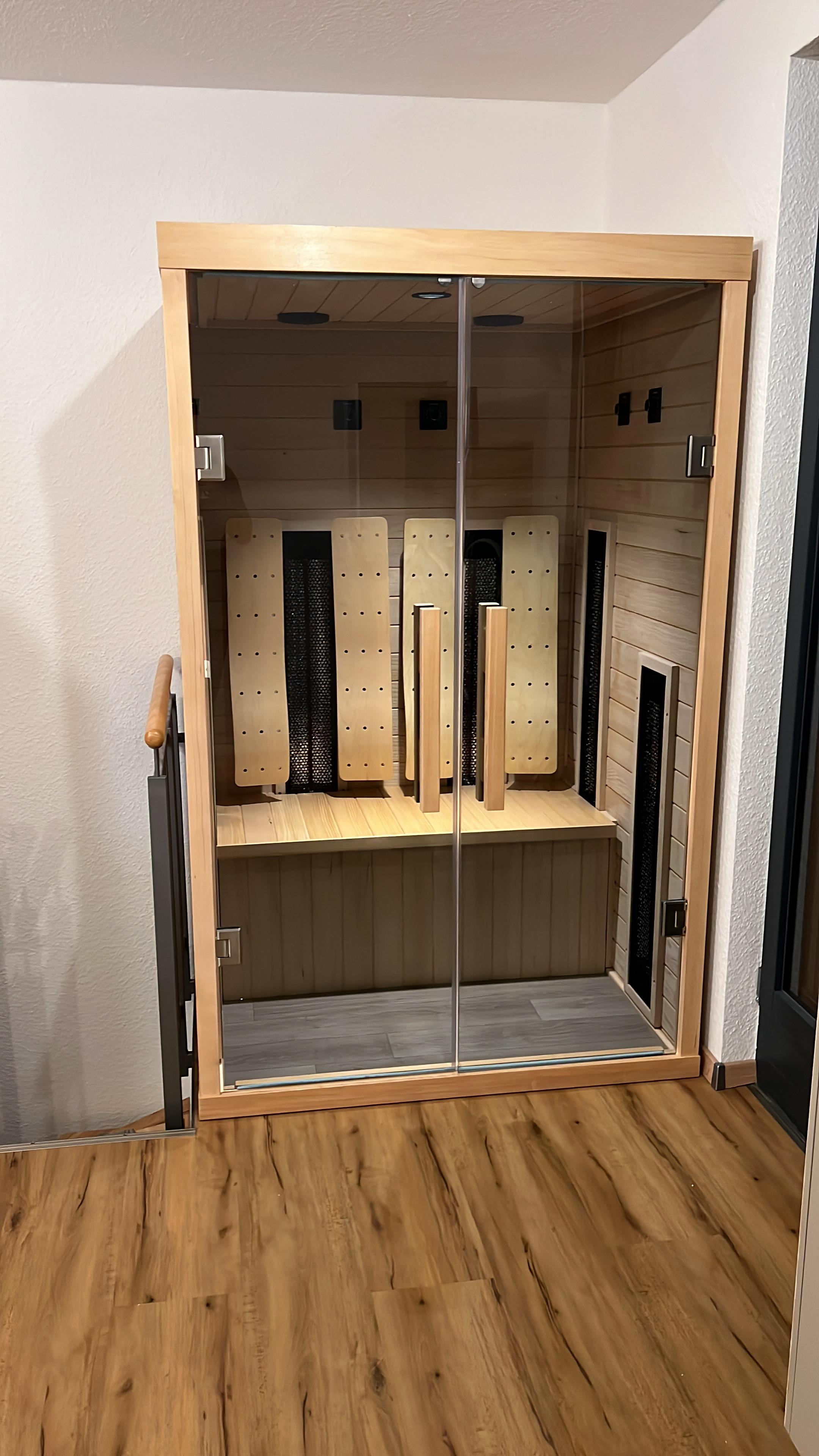 Wir sind total begeistert von unserer neuen Infrarotkabine! Die Wärme tut einfach gut und sorgt für echte Entspannung nach einem langen Tag. Das bunte Farblicht und die Bluetooth-Funktion schaffen eine richtig schöne Atmosphäre – sogar unsere Kinder genießen die gemütlichen Minuten darin. Eine Anschaffung, die sich wirklich lohnt! Danke auch an das gesamte Verkaufsteam, die Abwicklung war von vorne bis hinten echt Top!