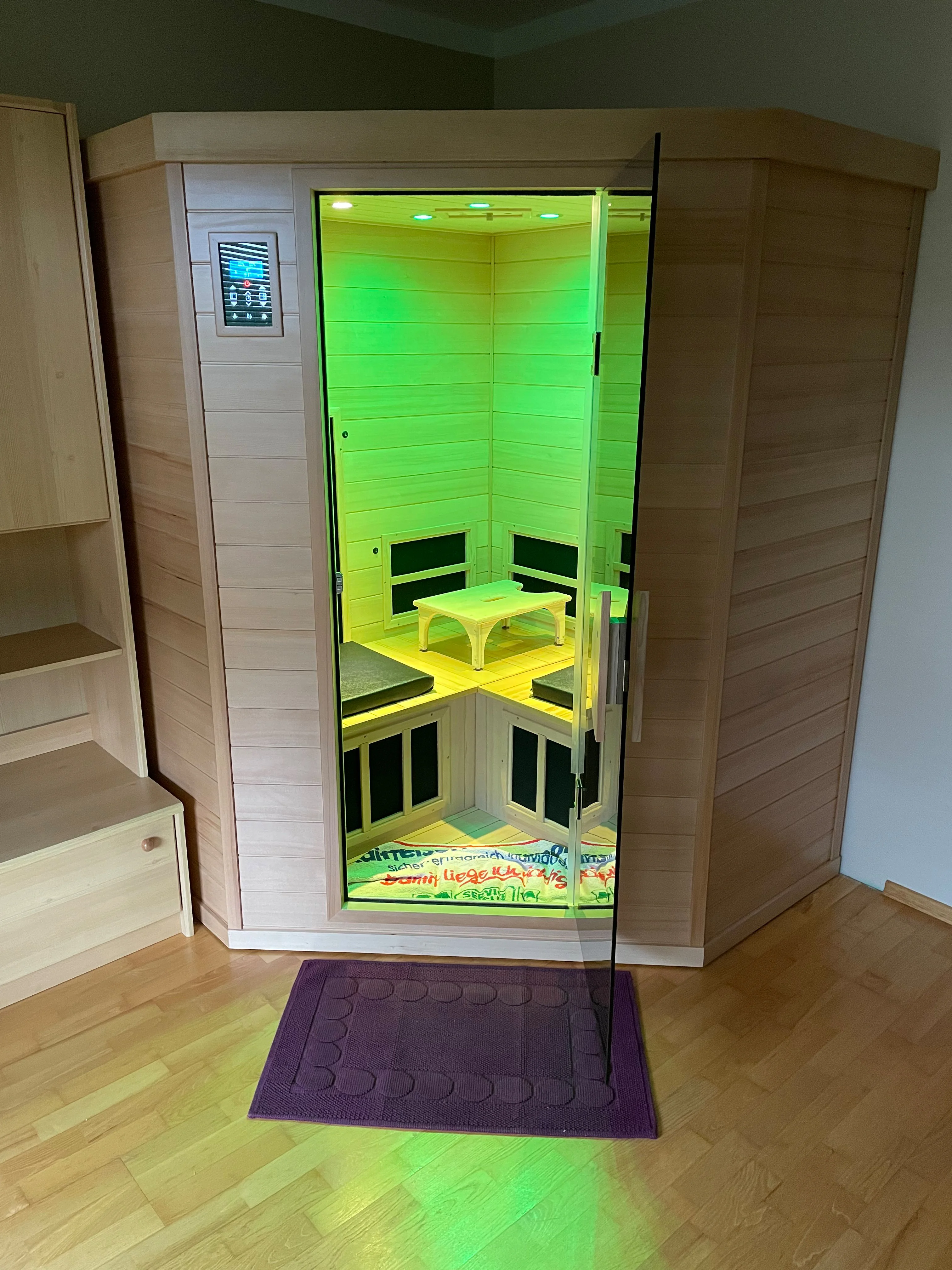 Auf der Suche nach Information über Infrarot sind wir auf Ihre Homepage gekommen; Preisvergleiche mit anderen Kabinen haben uns bewogen die Eckkabine bei der Fam Riedler in Nitscha zu besichtigen.Wir waren gleich überzeugt. Bestellung und Lieferung/Montage haben hervorragend funktioniert. Jetzt genießen wir die Wärme, das farbige Licht und die Ruhe sehr.