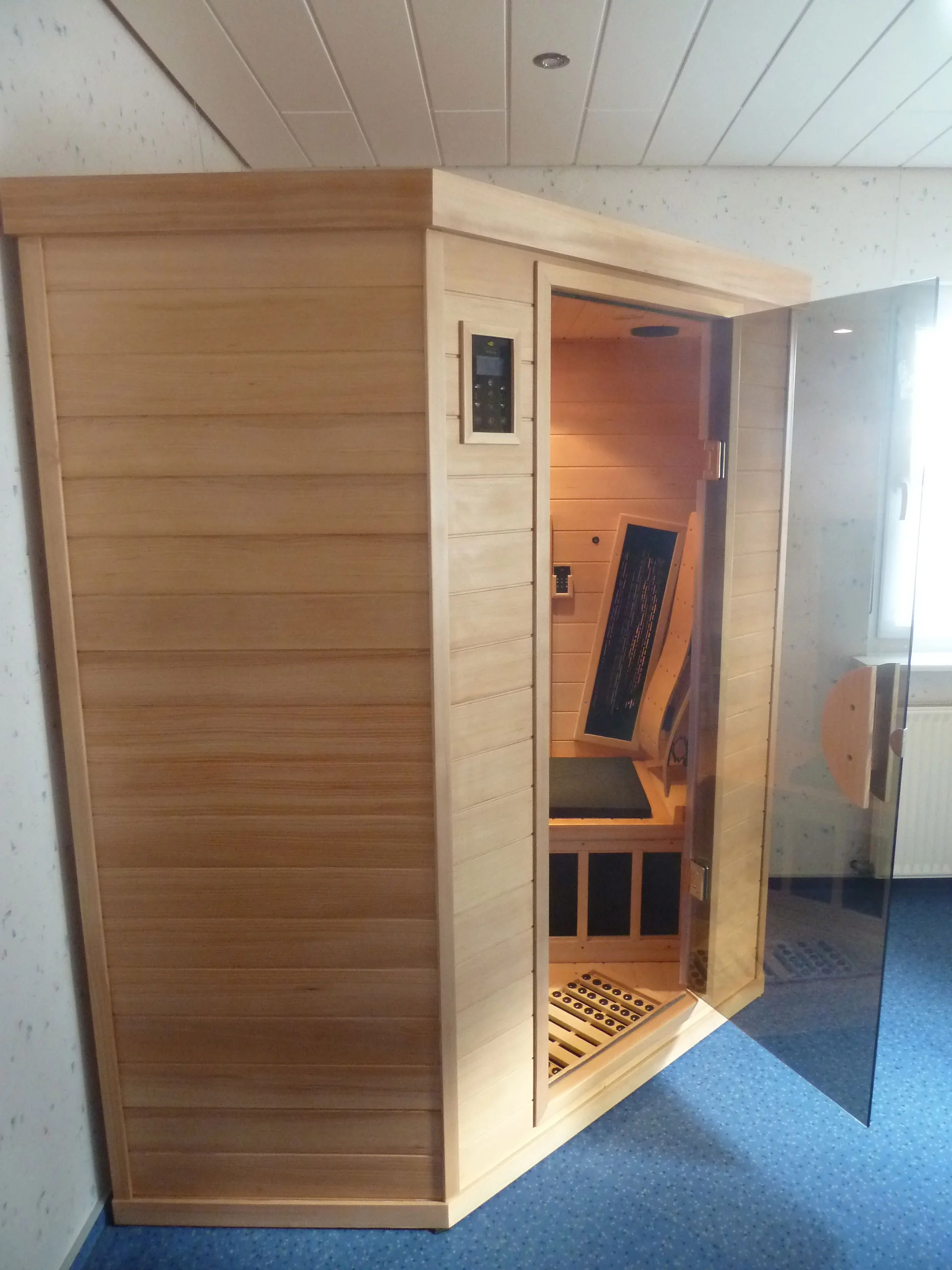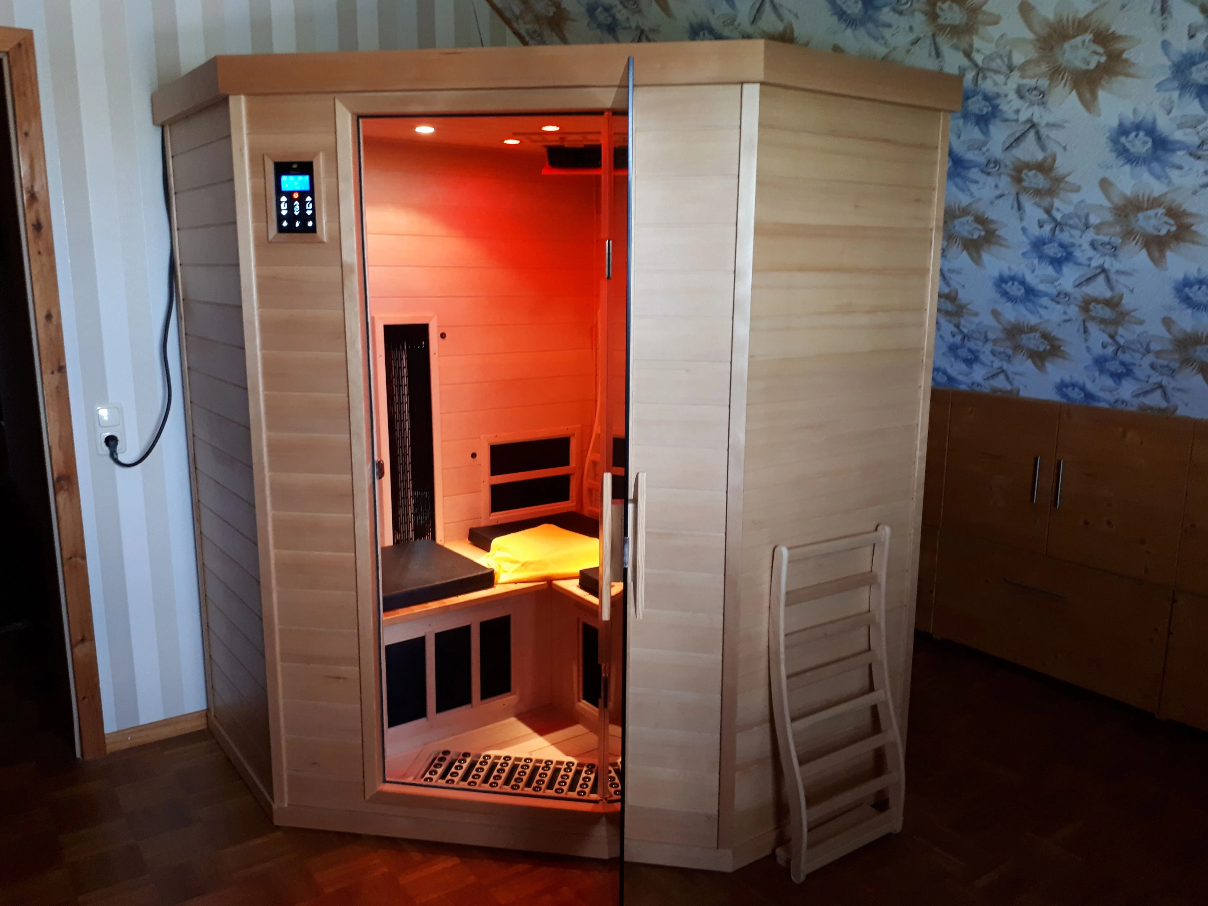 Infrarotkabine übers Internet gefunden. Sehr gute Beratung. In der Zweigstelle Nähe Gleisdorf. Montage haben wir mit 3 Mann selbst gemacht. Die infrarotkabine kann ein nicht Handwerker leicht aufstellen. Wir brauchten ca 3 Stunden. Infrarotkabine gefällt uns sehr gut, angenehme Wärme lichtspiel und Radio *VERBESSERUNGSWÜRDIG sind die Kopfstützen, für kleine Leute und Kinder sind sie zu kurz. Sie sollten ca 20 cm mehr nach unten ragen. *Infrarotkabine empfehlen wir sehr sehr gerne weiter.