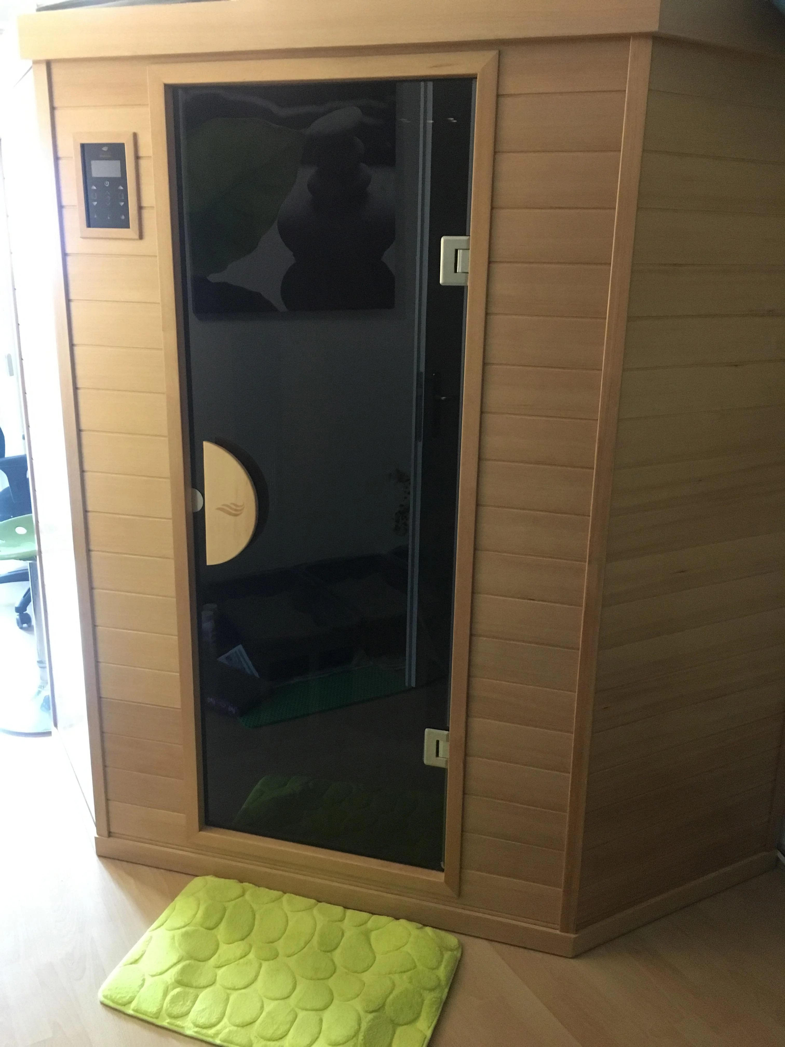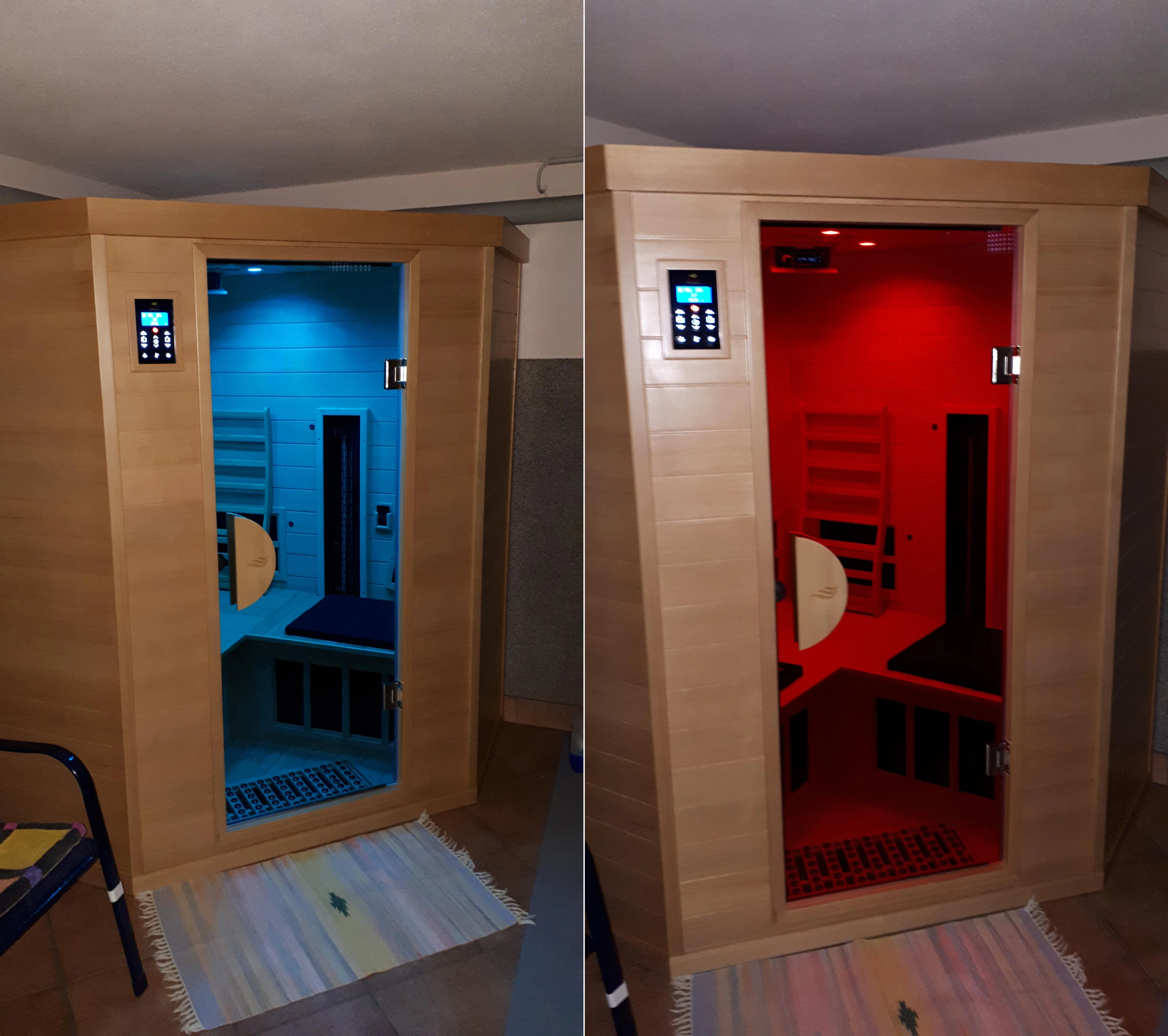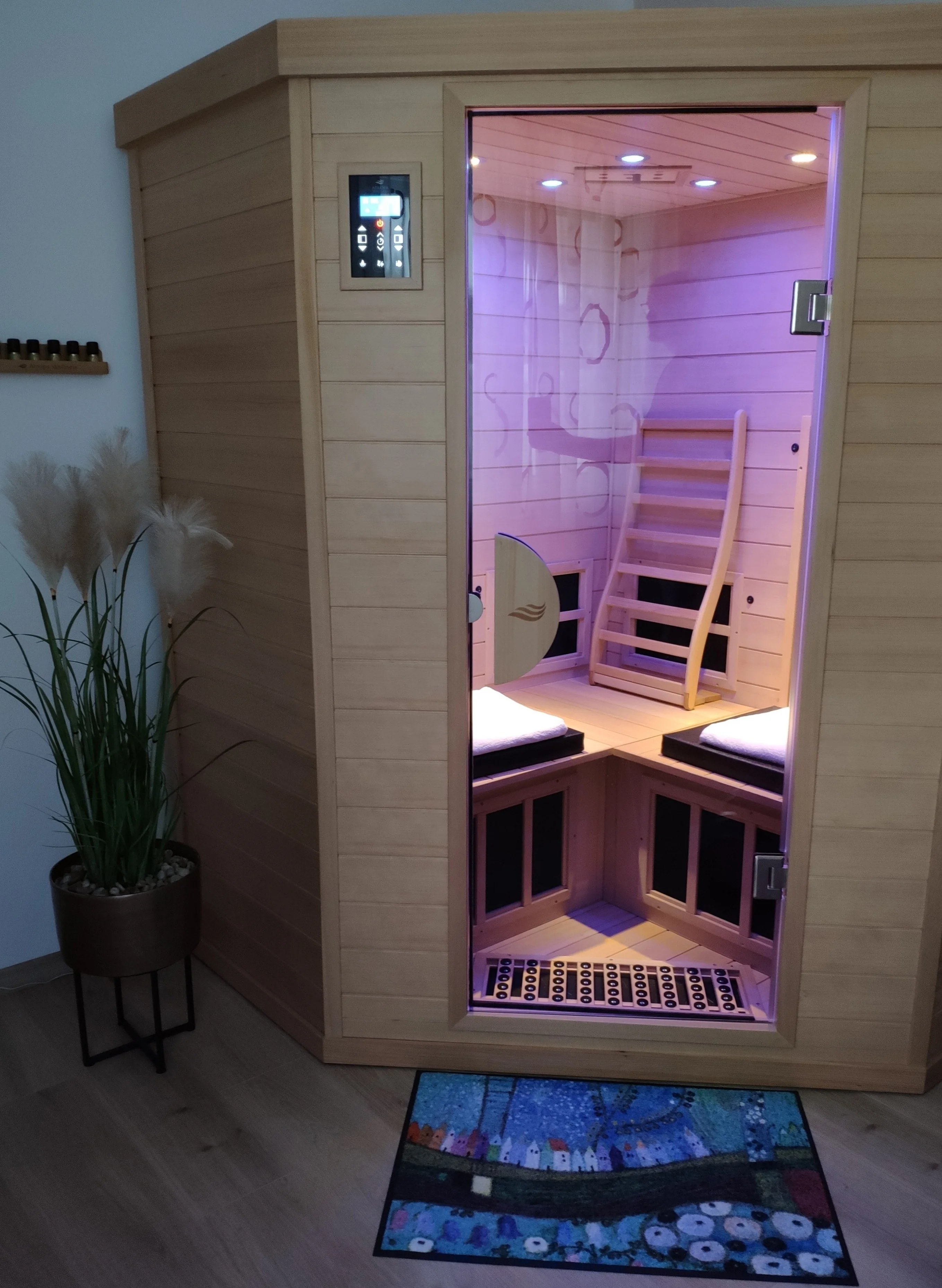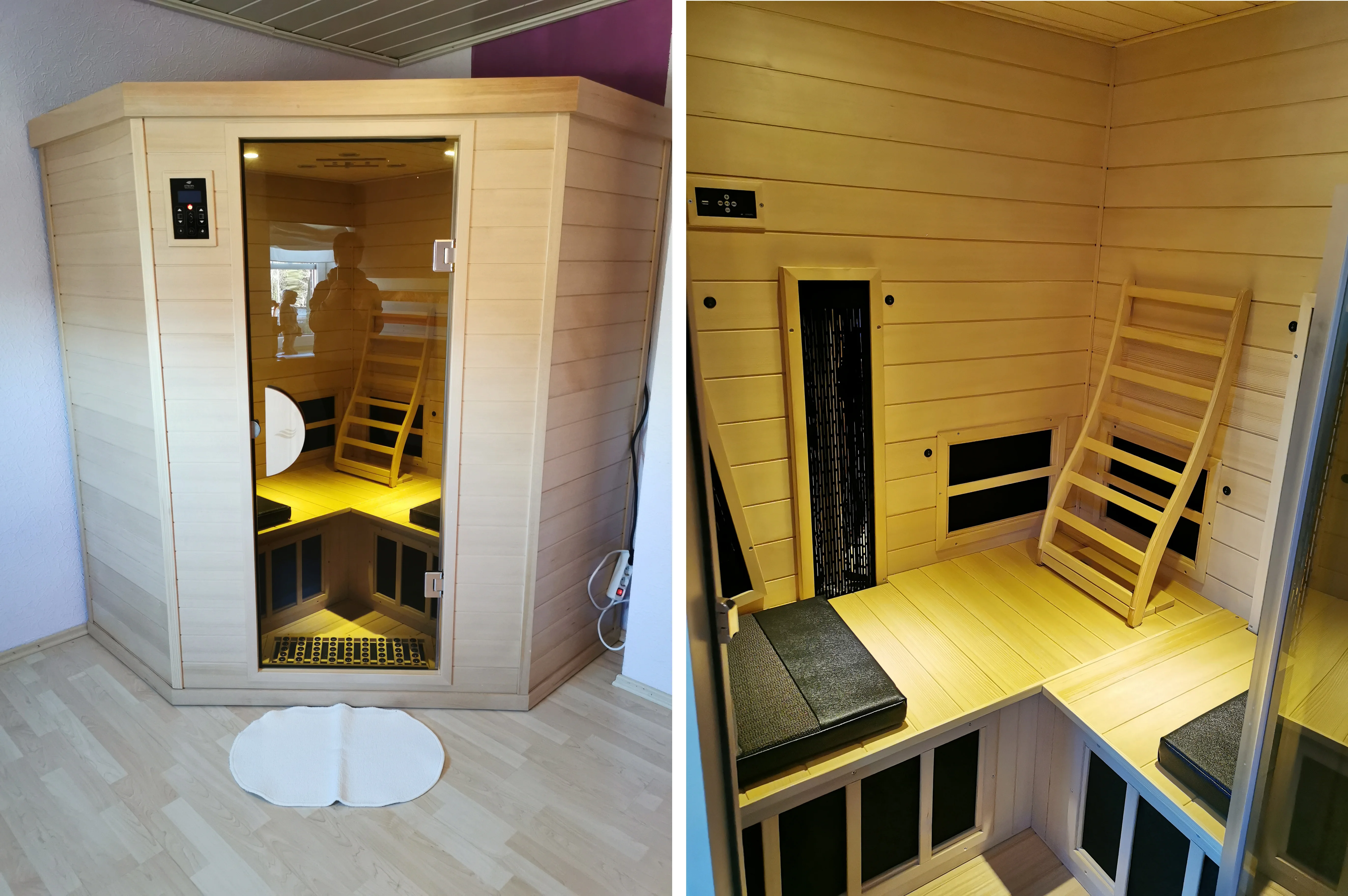 Mittlerweile genießen mein Mann und ich die Kabine. Da ich immer Rückenprobleme habe, gehe ich nach den Behandlungen immer schön in die Kabine. Es geht so schell. Kabine anstellen, einen Strahler anstellen und schon wird mein Rücken schon gewärmt. Das tu richtig gut.