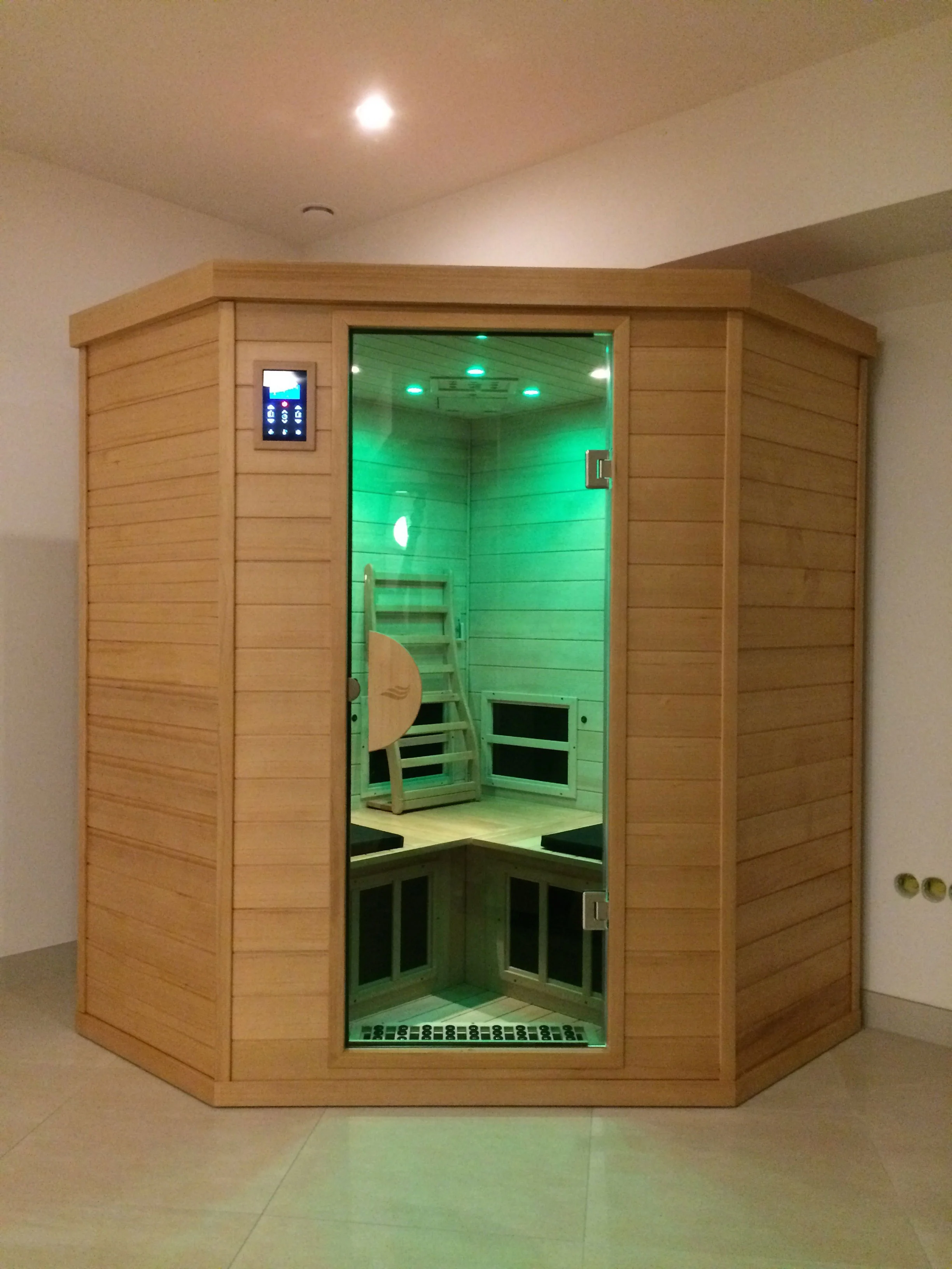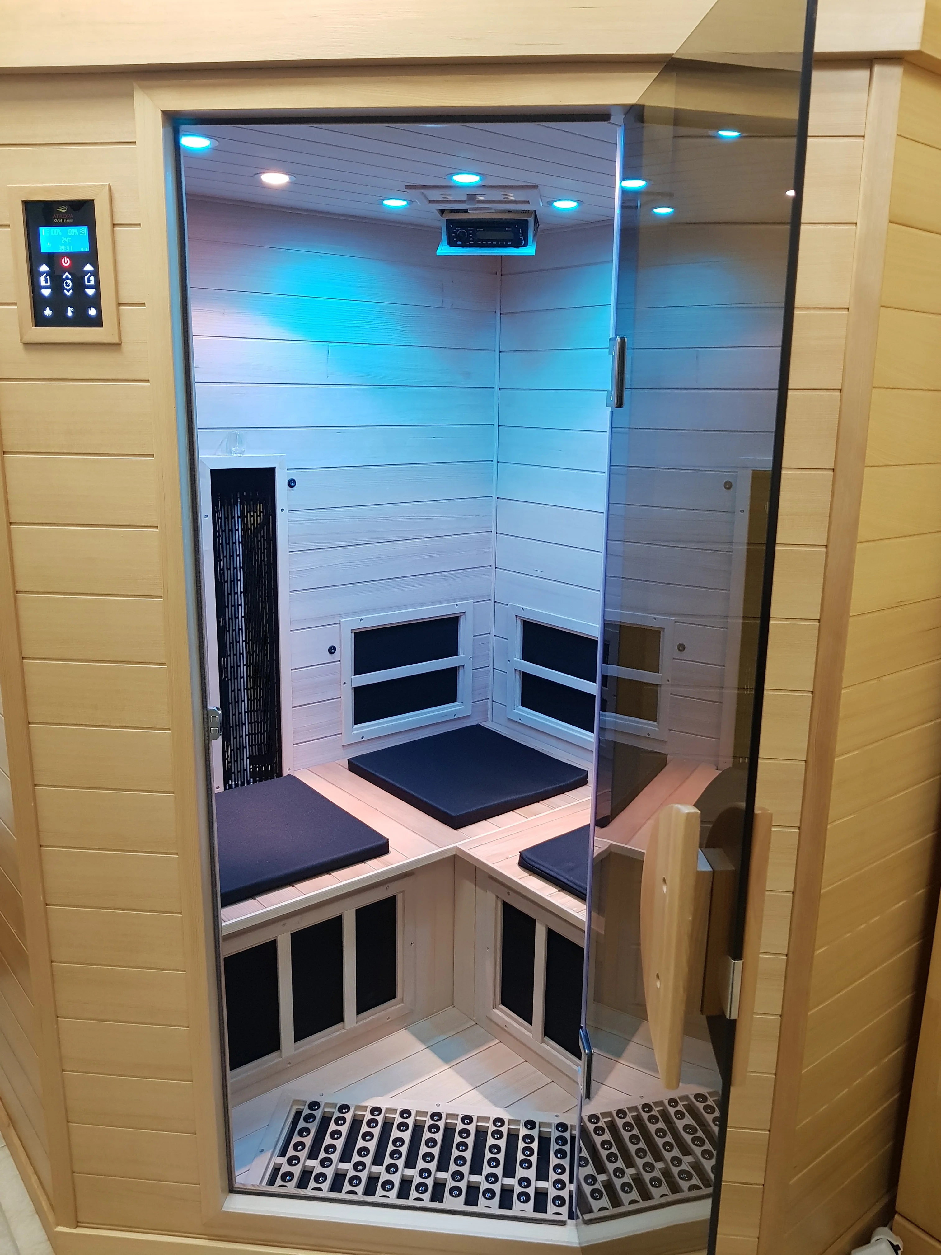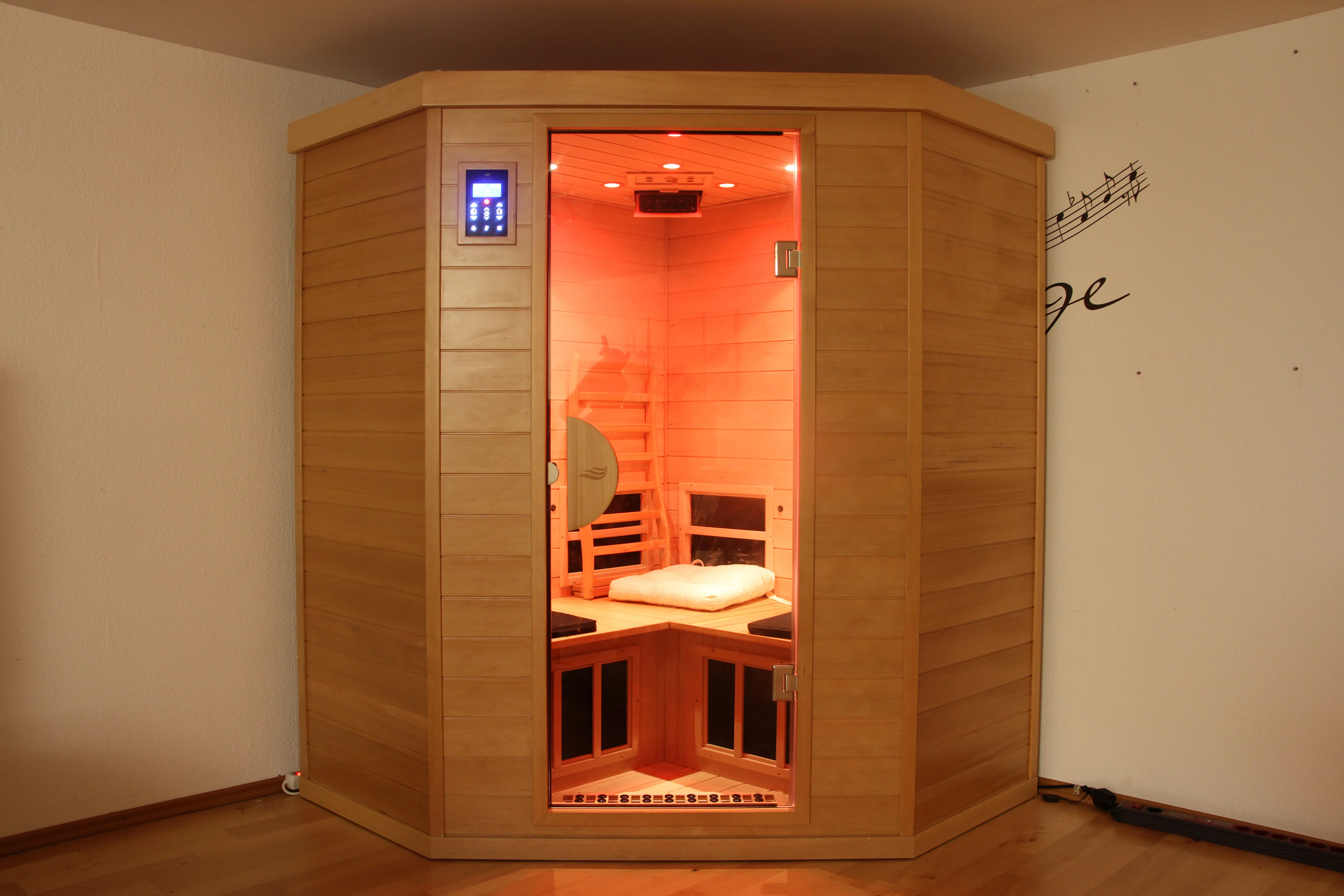 Habe gesucht und gefunden. ATS Eck Wellness Kabine von ATROPA Telefonisch unsere Wünsche bekanntgegeben wurden dabei super beraten, bestellt und nach 5 Tagen wurde sie auf Termin geliefert, einfach super. Ausgepackt mit der Frau; die Teile zusammengestellt und schon stand die Kabine nur für die Decke kam der Nachbar zur Hilfe . Alles bestens beschrieben und einfach zum Aufbauen nach 4 Stunden war auch schon das Licht an und die Infrarot Kabine betriebsbereit. Kann ich nur weiterempfehlen