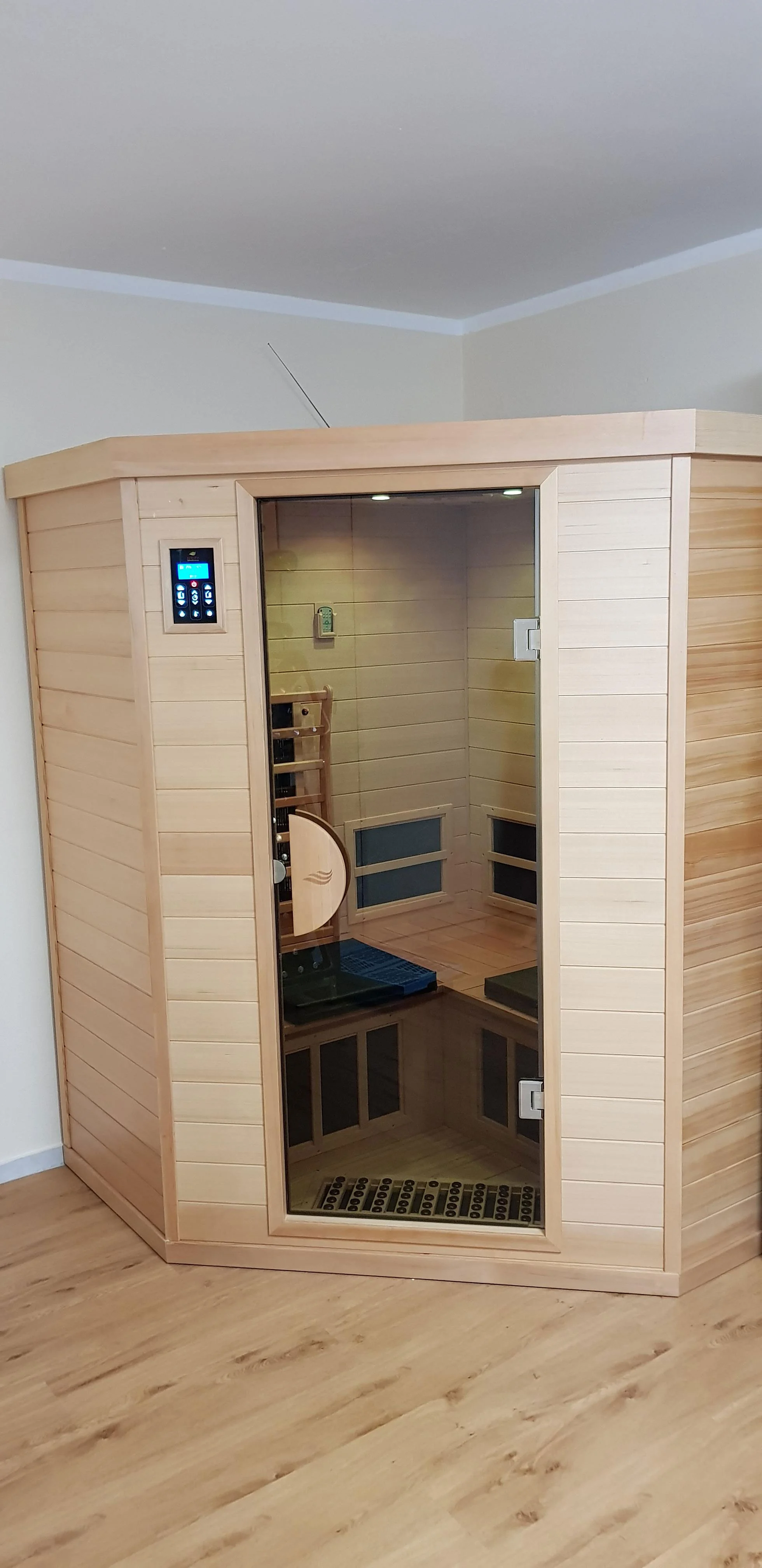 Wir sind zufällig im Internet auf die Firma Atropa gestoßen. Sowohl die gut aufgebaute Homepage als auch die vielen guten Bewertungen haben uns dazu gebracht, bei Atropa praktisch "blind" eine Infrarotkabine zu bestellen. Wir waren wirklich super mit allem zufrieden, Bestellabwicklung und Lieferung verliefen reibungslos. Beim Spediteur hat es eine kleine Beschädigung gegeben, selbst das wurde umgehend mit uns besprochen und gelöst. Der Aufbau wurde von uns selbst gemacht (Mann und Frau) und war auch ganz gut zu zweit machbar. Etwas Kraft sollte man aber schon mitbringen und von Vorteil ist, wenn der Mann etwas größer ist. Wir haben uns aus Platzgründen für die Eck-Kabine entschieden, obwohl diese nicht zu unserem Stil passt, aber sie ist wirklich ein wahres Raumwunder. Die Anordnung der Strahler sieht zwar etwas komisch aus, aber ist absolut passend und durchdacht so eingebaut, dass wirklich jeder Bereich gewärmt wird. Selbst unsere zwei kleinen Kinder (6 und 7 Jahre) gehen gerne in die Sauna, mittlerweile sogar alleine und hören dabei Musik oder ein Hörbuch. Hier schalten wir manche Strahler aus und nehmen eine niedrige Intensität, kann man alles gut und leicht einstellen. Insgesamt können wir die Firma Atropa uneingeschränkt weiterempfehlen.