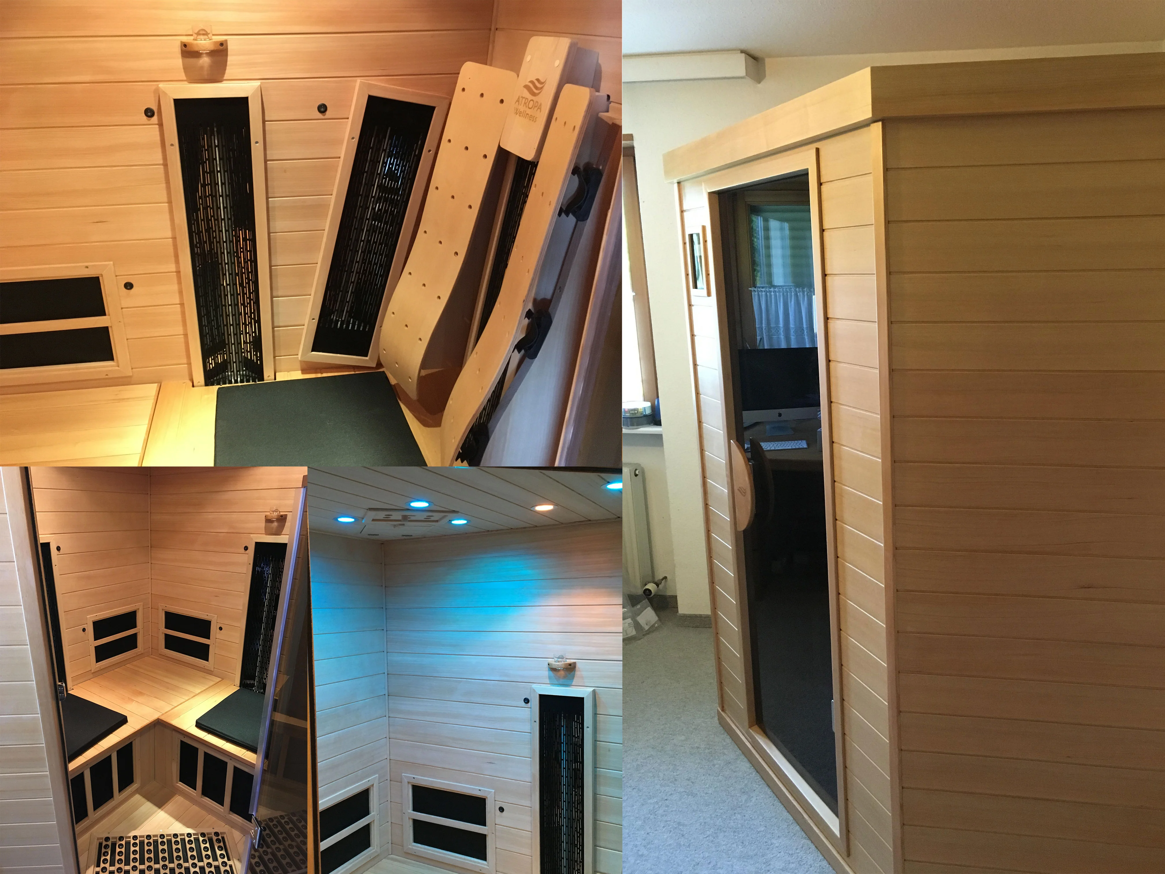 Wir haben seit Mitte November eine ATROPA Infrarotkabine, welche sich als die beste Anschaffung überhaupt erwiesen hat. Nach einem anstrengenden Arbeitstag eine halbe Stunde bei 40 Grad und guter Musik wirkt Wunder. Für meine Frau und mich gibt es nichts schöneres als vor dem Schlafengehen in der Kabine zu entspannen.