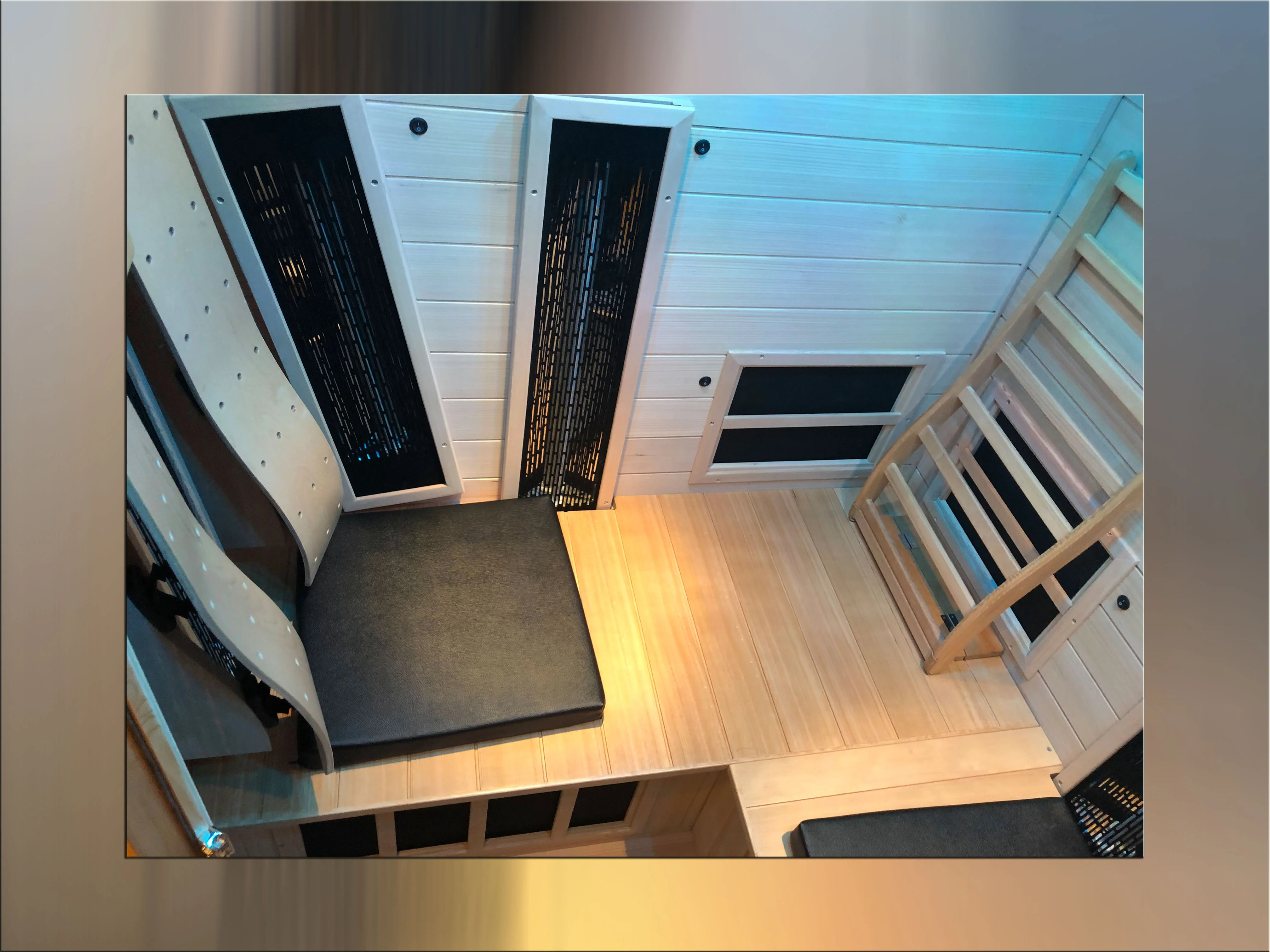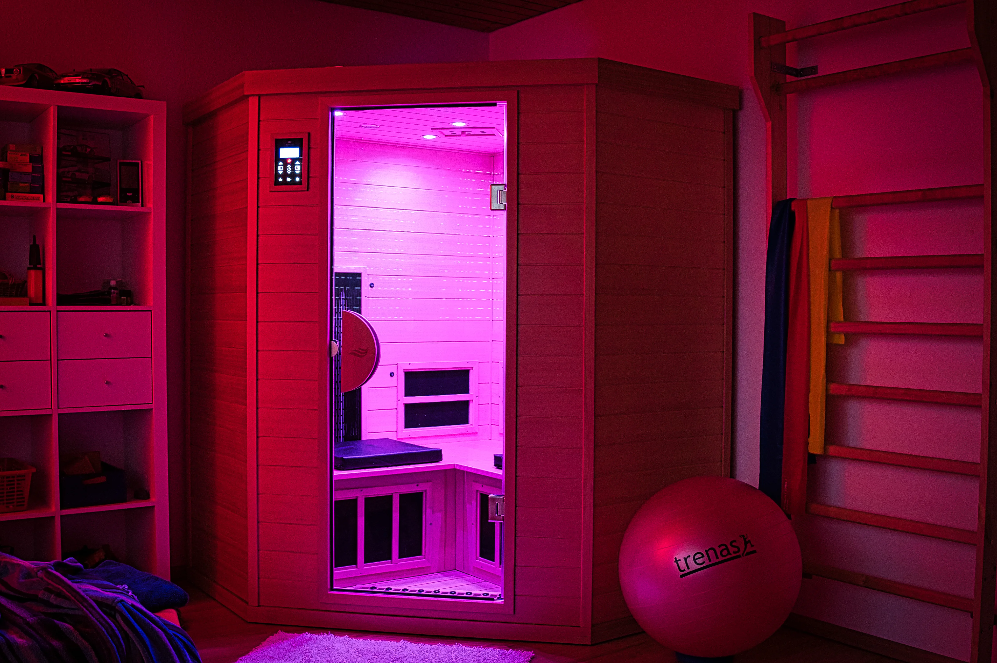 Der große Vorteil der Eckkabine ist, das die größtmögliche Strahleranordnung ausgereizt ist, so befinden sich die Tiefenwärme-Infrarotstrahler nicht nur im Rücken, sondern gleichzeitig werden auch Schultern und Kniegelenke bestens therapiert.