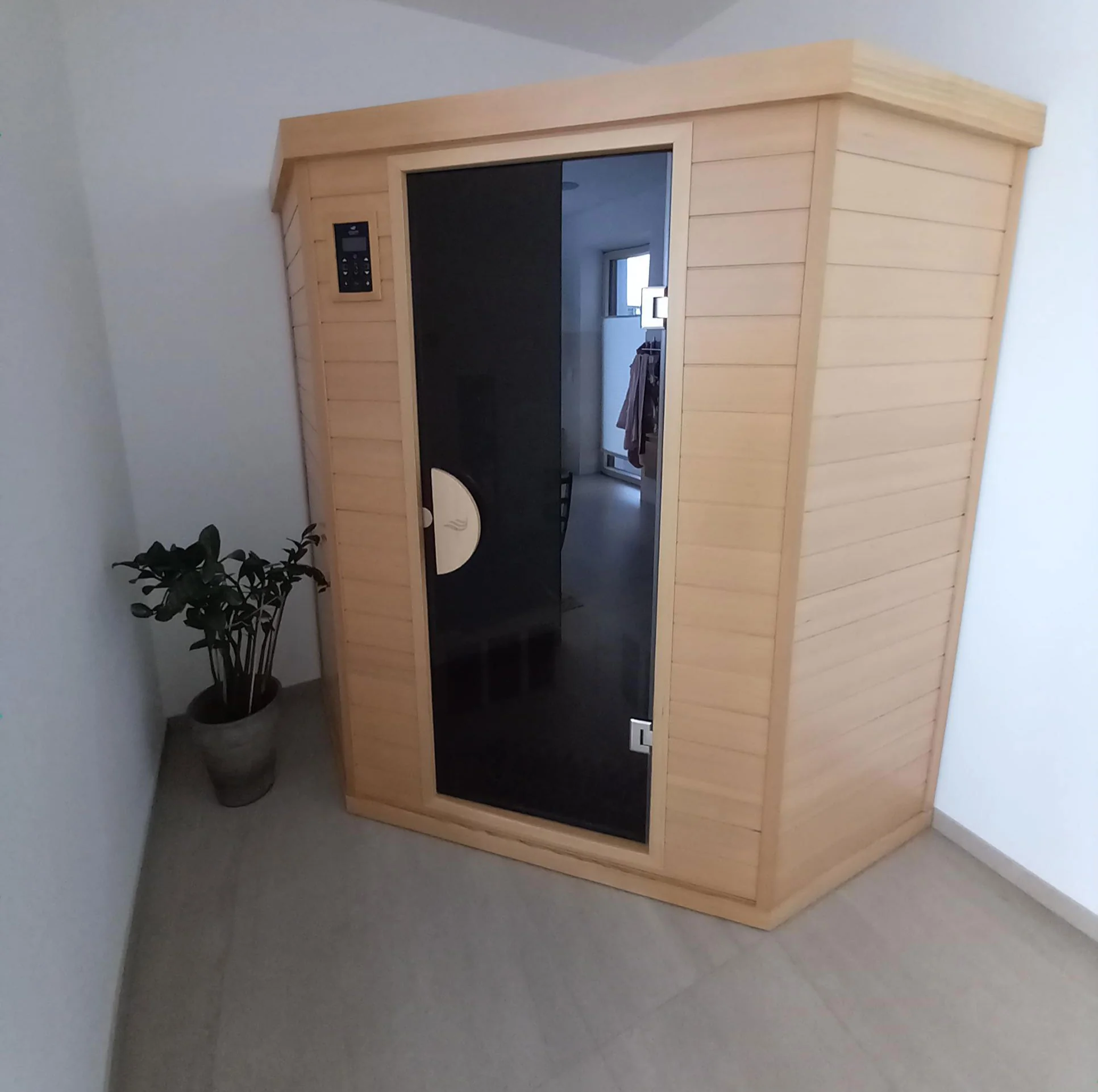 Unsere Finnische Sauna wurde mir zu heiss. So suchten wir nach Aternativen. Nach div. Internetseiten und youtubeinfos, wussten wir, was für uns wichtig ist. So stiessen wir auf ATROPA. Internetseite, Beratung, Kauf, Lieferung (inkl. Transportschaden), Support nach Montage und tel. Unterstützung waren immer top. Vielen dank Atropateam. Wir nutzen die Sauna nun schon fast ein 1/2 Jahr. Für mich hat sich vieles verbessert. In der FS bekam ich Hitzstaus in den Beinen - jetzt schwitzt der ganze Körper gleichmässig und meine Celullitis und die Schmerzen auf meiner rechten Seite haben sich verabschiedet. Die Saunatücher stinken (sorry, aber es ist so) nach jedem Saunagang. Da wird nicht 'nur' Schweiss abtransportiert. Wir geniessen nun die Sauna fast täglich und sind happy damit (auch wenn wir uns nicht mehr, wie in FS, hinlegen können) Dieser Wechsel hat sich wirklich gelohnt. Silvia + Renato T.