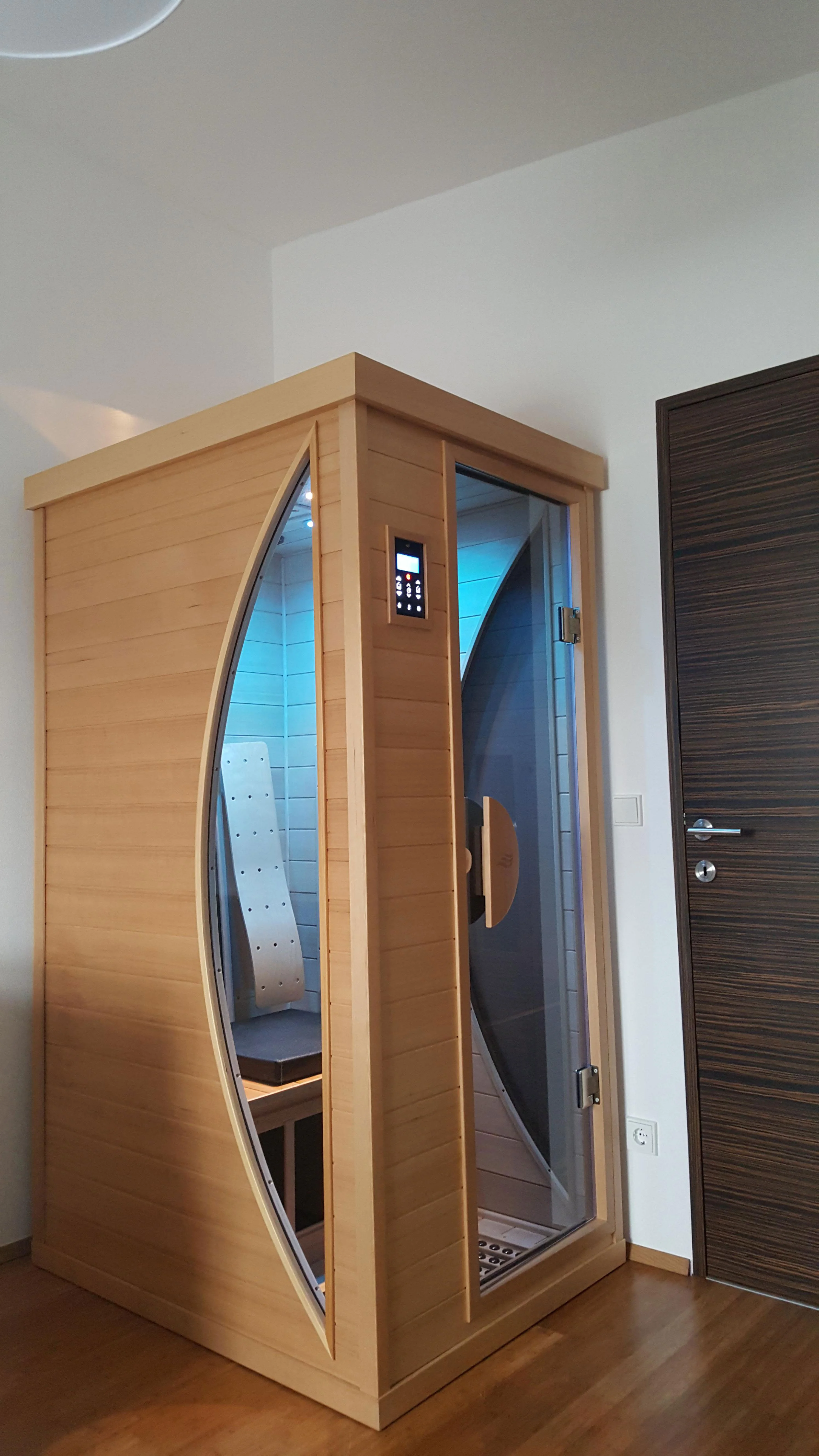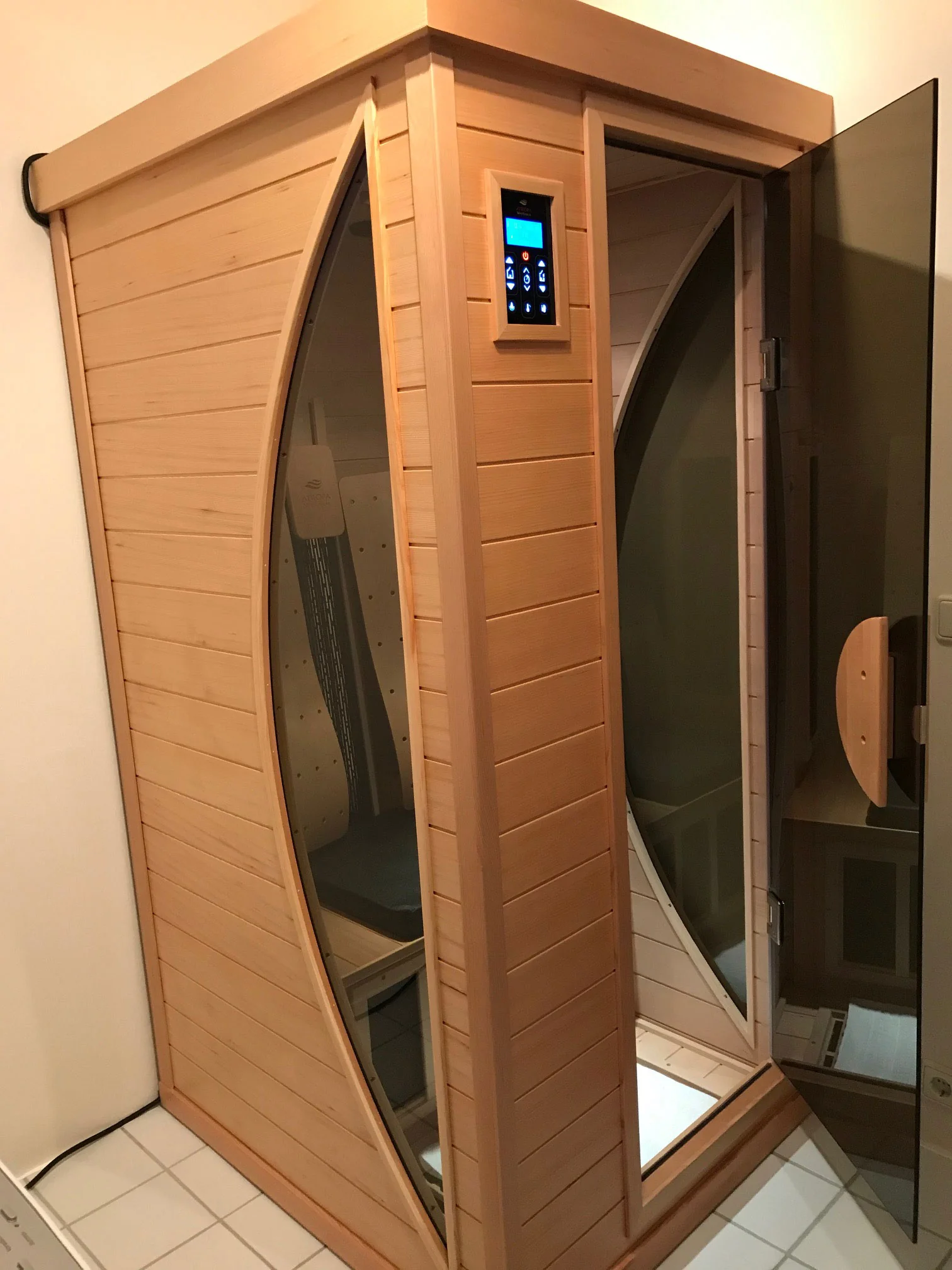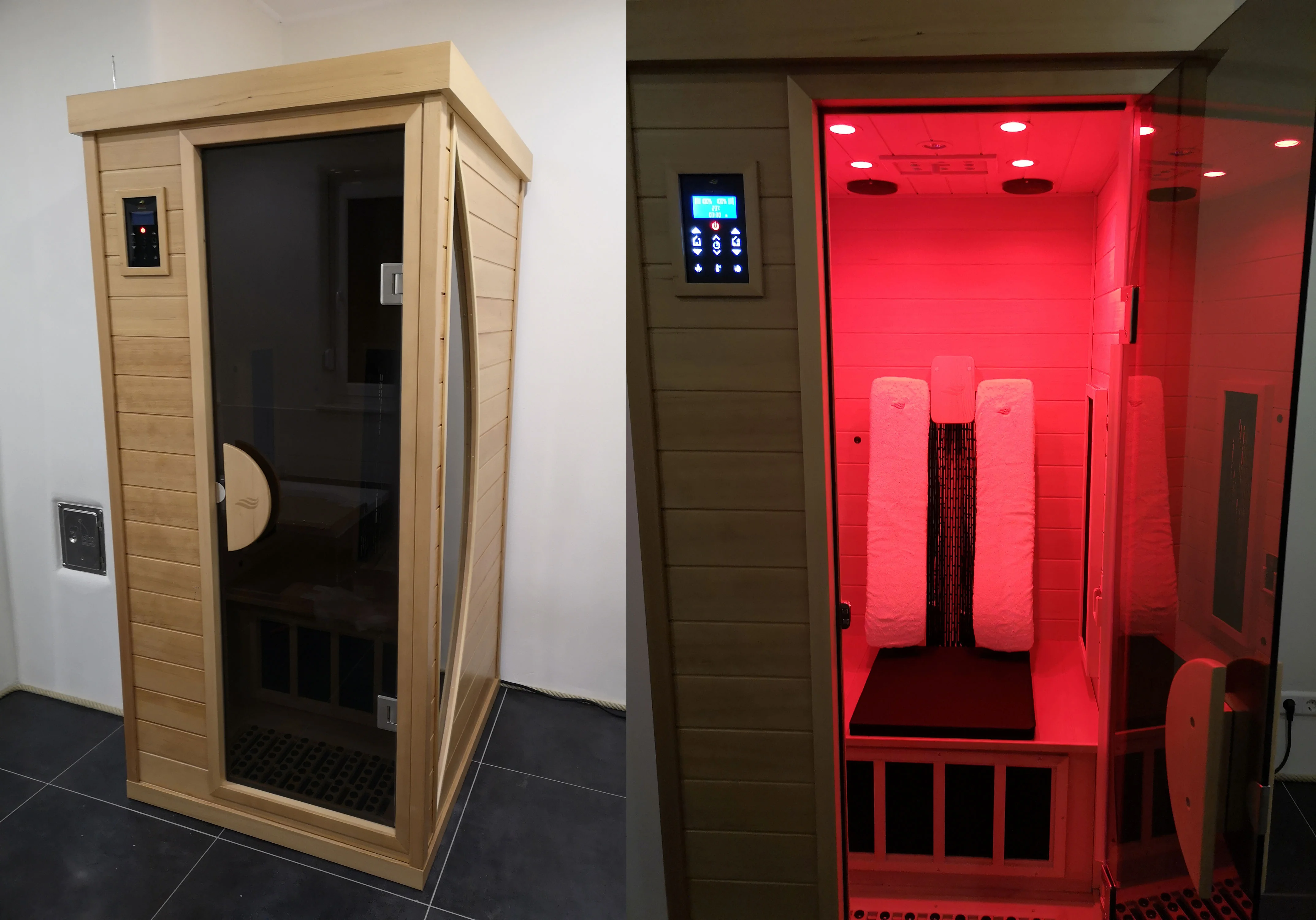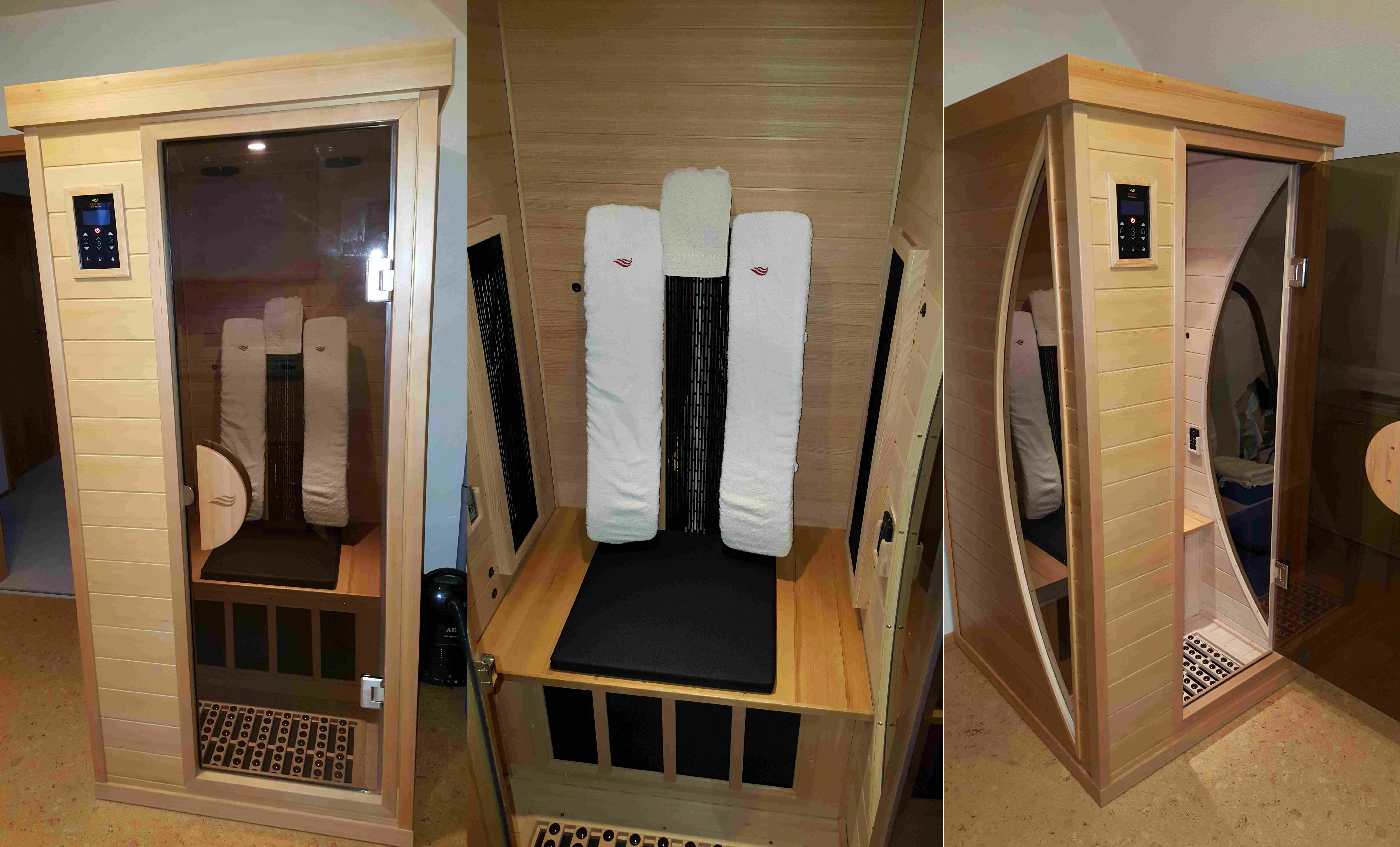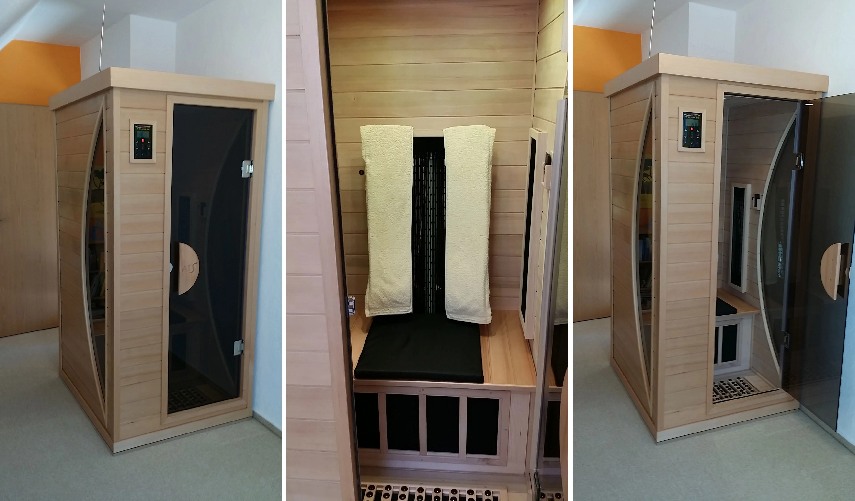 Mein Ziel war es, eine Infrarotkabine für 1 Person zu finden, bei der Qualität, die Sicherheit (z.B. Zertifizierung der Strahler), die Ausstattung und das Preis / Leistungsverhältnis passt. Wenn man im Internet Infrarotkabine eingibt, bekommt man unzählige Angebote von Kabinen in unterschiedlichen Preisklassen: günstige von € 500 - € 1500; mittelpreisige € 1500 - € 3000 und hochpreisige ab € 3000 Die günstigen Kabinen, z.B. vom Baumarkt, etc., habe ich von vornherein ausgeschlossen, da diese mit qualitativen hochwertigen Kabinen nichts zu tun haben.