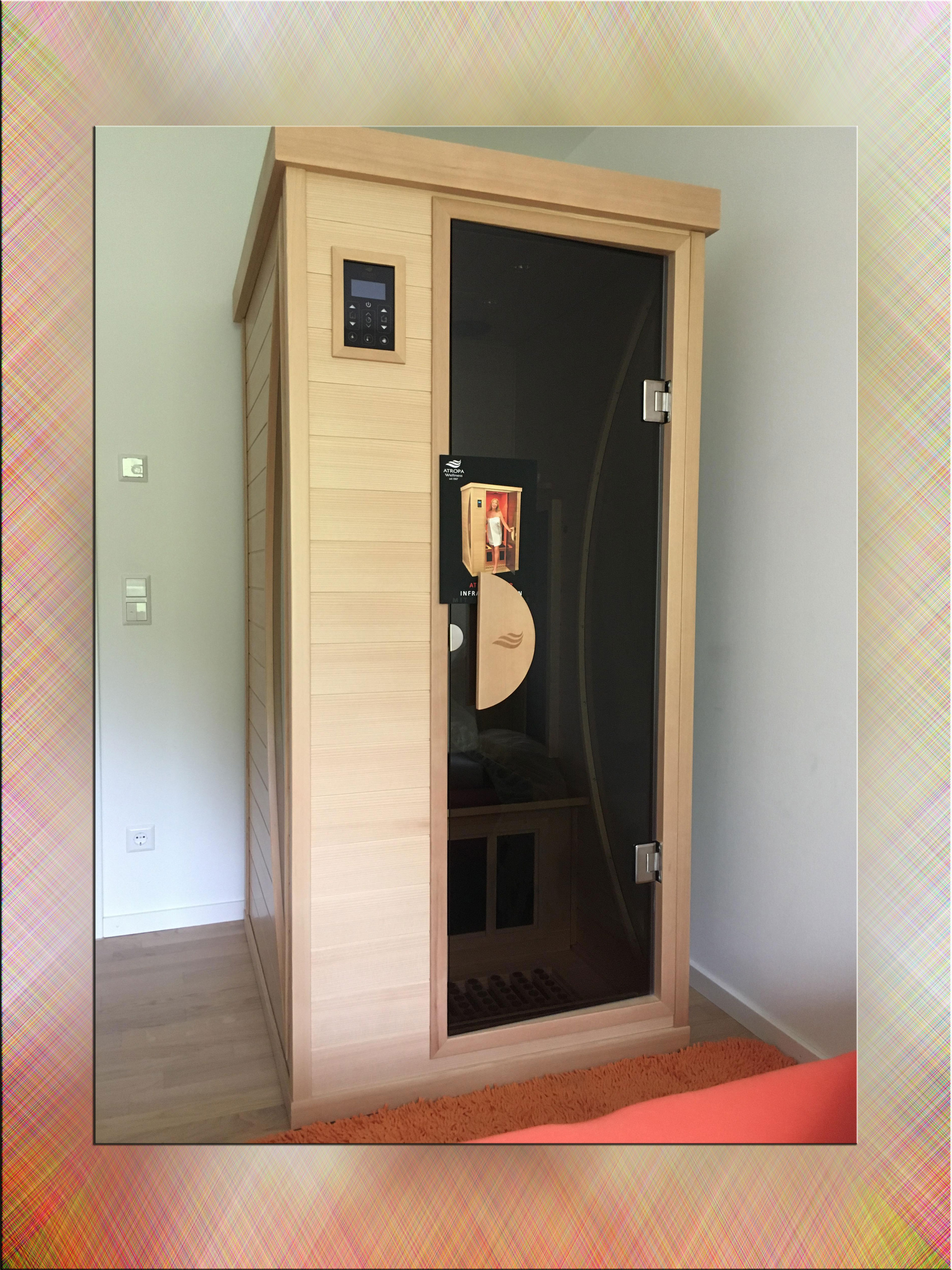 Wir sind sehr zufrieden mit ihrer Infrarotkabine ATS-1 Haben guten Erfolg bei Kreuzschmerzen, Müdigkeit, Erkältung u.s.w Nicht zu vergessen die Obtik, passt auch gut in Wohnbereich siehe Foto