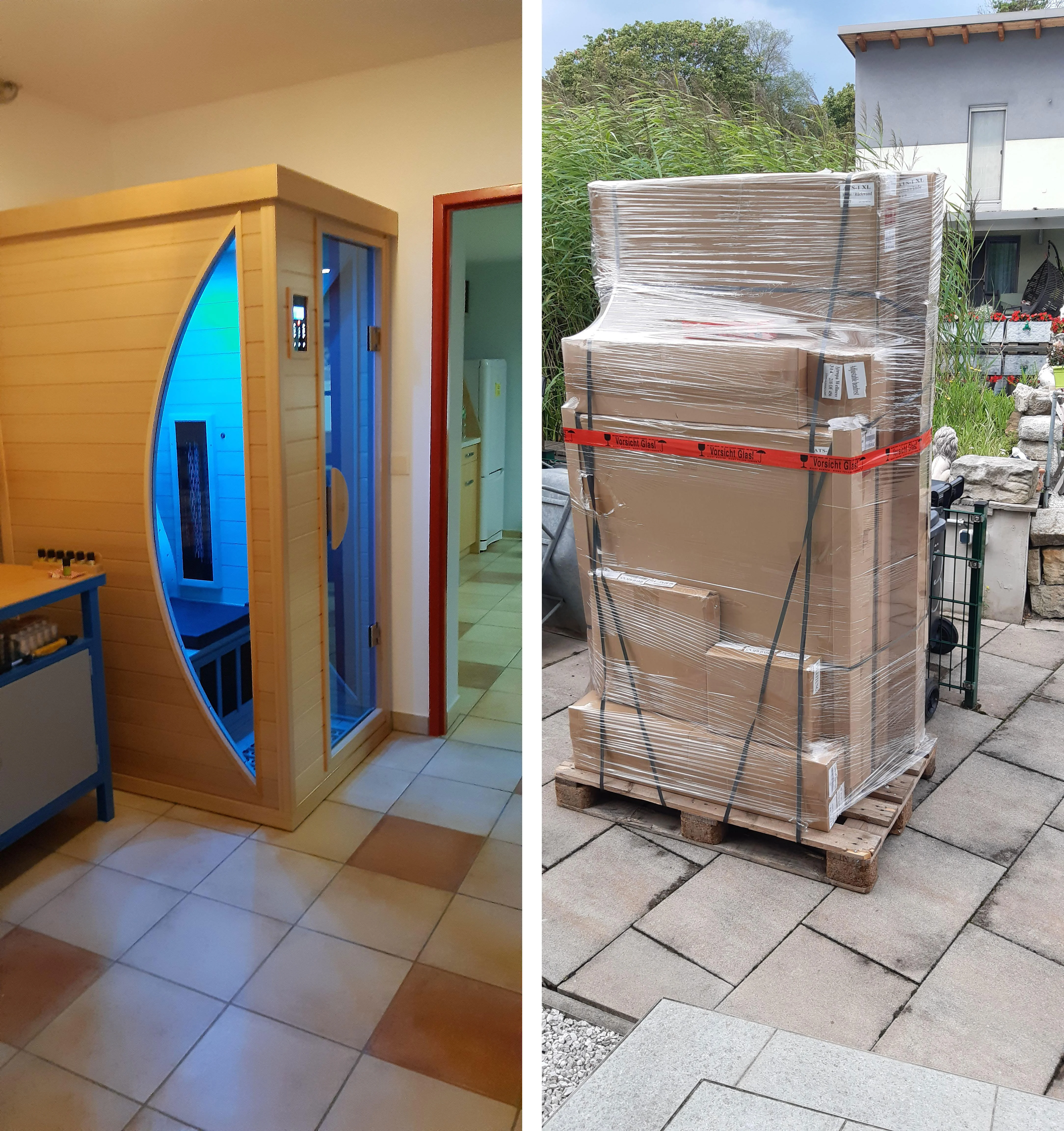 die Infrarotkabine ist da, wurde auch gleich ausgepackt, aufgebaut und ausprobiert.