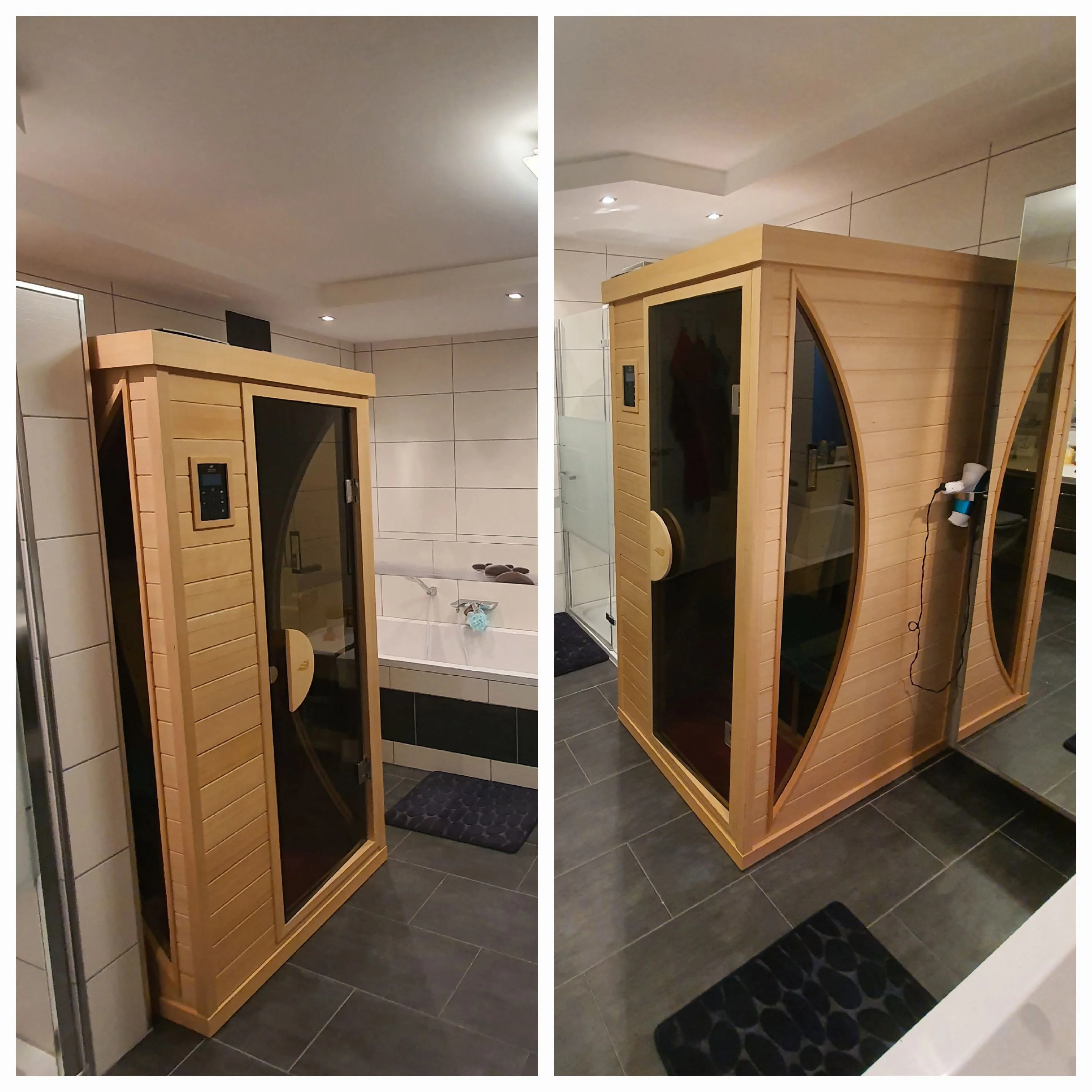 Wir haben die Kabine bei meinem Bruder gesehen und uns dann auch entschlossen dieses Fabrikat zu nehmen, da qualitativ sehr gut und der Preis akzeptabel ist. Bestellung, Lieferung und Reklamation geht schnell und unbürokratisch. Die Montageanleitung ist hervorragend geschrieben und bebildert. Wir konnten ohne Probeme in kurzer Zeit aufbauen. (1-2 Stunden) Eine Bestrahlung speziell für die Oberschenkel hätte mir wegen Ischiasbeschwerden noch gefallen. Wir würden die Kabine auf alle Fälle weiterempfehlen. Nach dem Sport und der Gartenarbeit ist es ein Highlight die Muskeln darin zu entspannen.