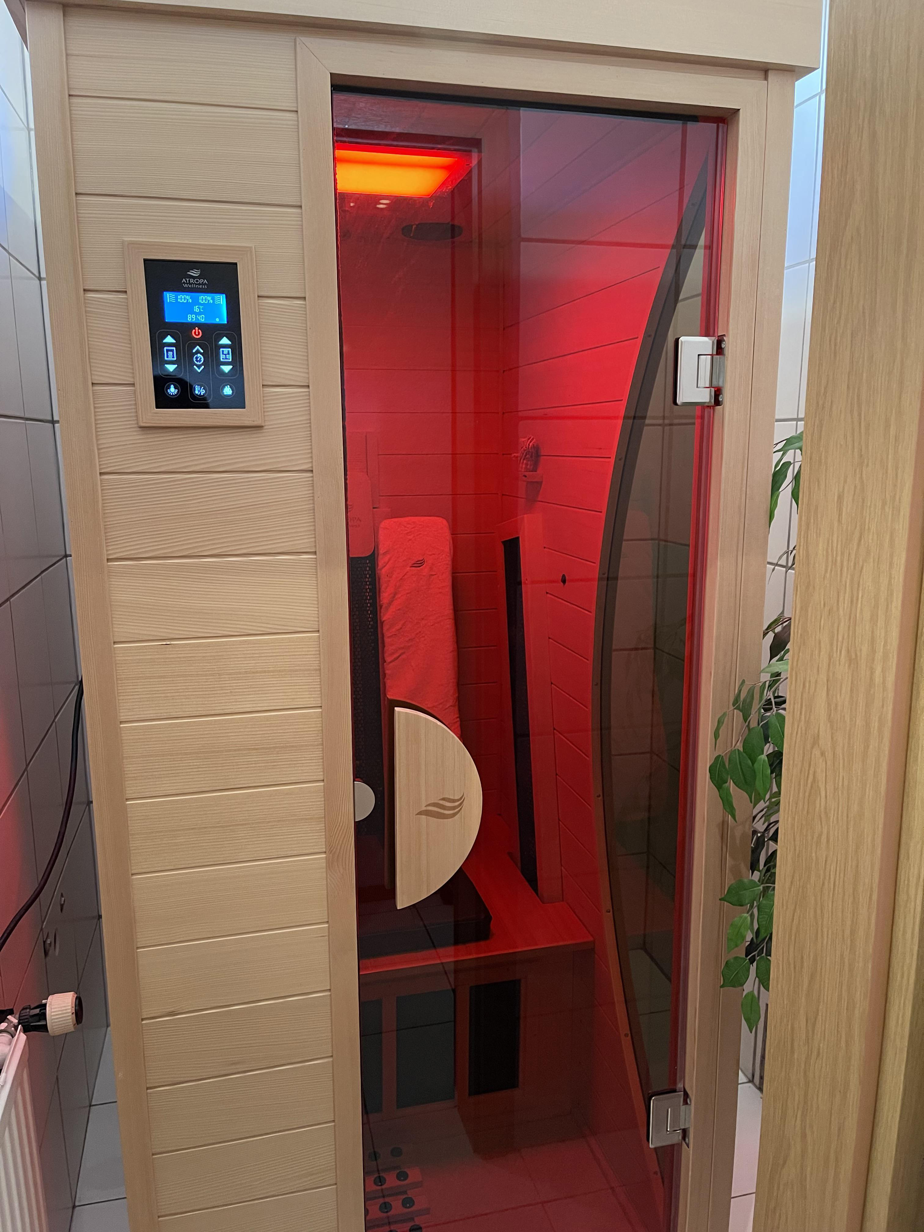 Liebes ATROPA Team! Durch lange Internetrecherchen und ausprobieren diverser Infrarot Kabinen ist meine Entscheidung für die Firma ATROPA gefallen. Top Qualität in allen Richtungen! Seriöse Beratung am Telefon und Vorort im Ausstellungsraum Wien. Kabine im Dez. 2018 bestellt und auf meinem Liefertermin 11 Monate später Rücksicht genommen - Gott was willst du mehr. Am 18.11. 2019 selbst montiert mit der Hilfe eines Freundes. Montage sehr, sehr einfach und gut beschrieben in den Unterlagen! Die Infrarot Kabine ATS-1XL wurde im Abstellraum aufgestellt und das sollte bitte keine Abwertung sein für dieses fantastische Produkt sondern nur die Vielfalt der Stellmöglichkeiten zeigen. Ich habe in meiner neuen Wohnung die Vorzimmer/Küche anders geplant und so wurde Platz für einen "Mini Wellness" geschaffen. Gleich am Abend ausprobiert und ich bin wirklich sehr begeistert! Vielen, vielen Dank und beste Grüße aus Wien, Wolfgang K.