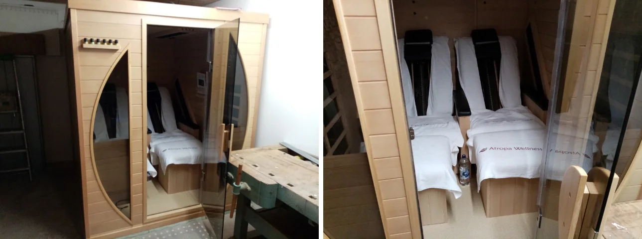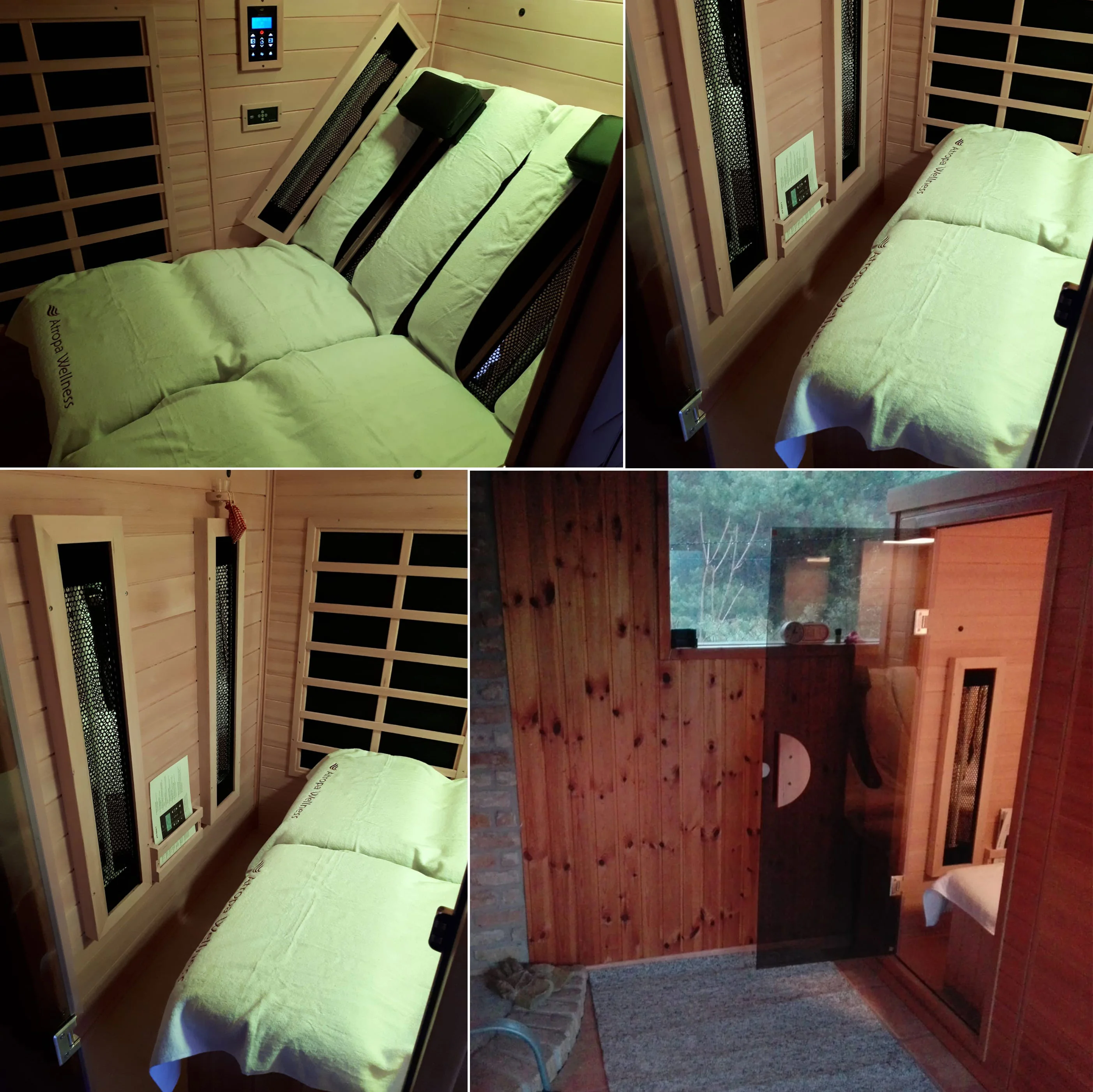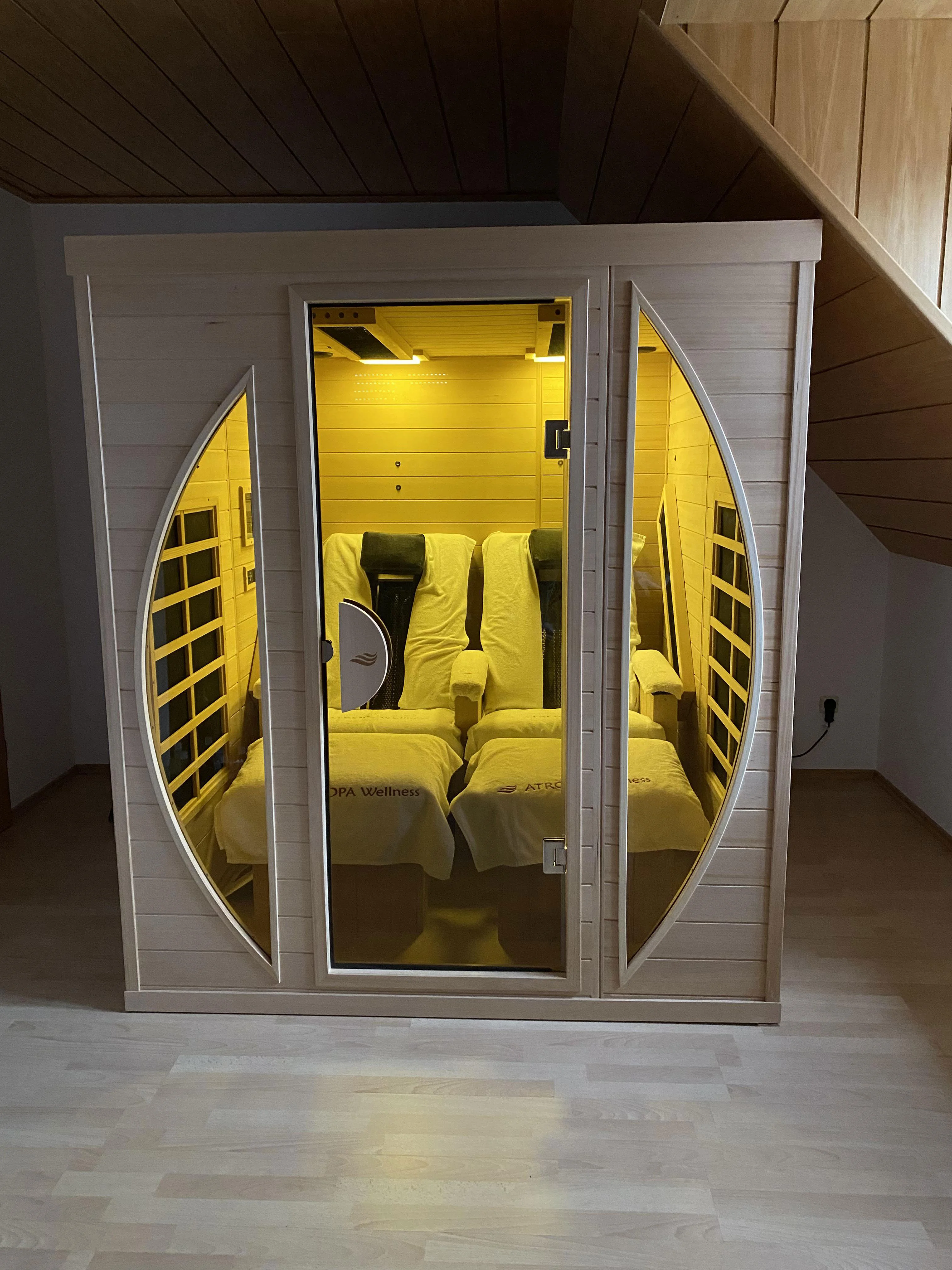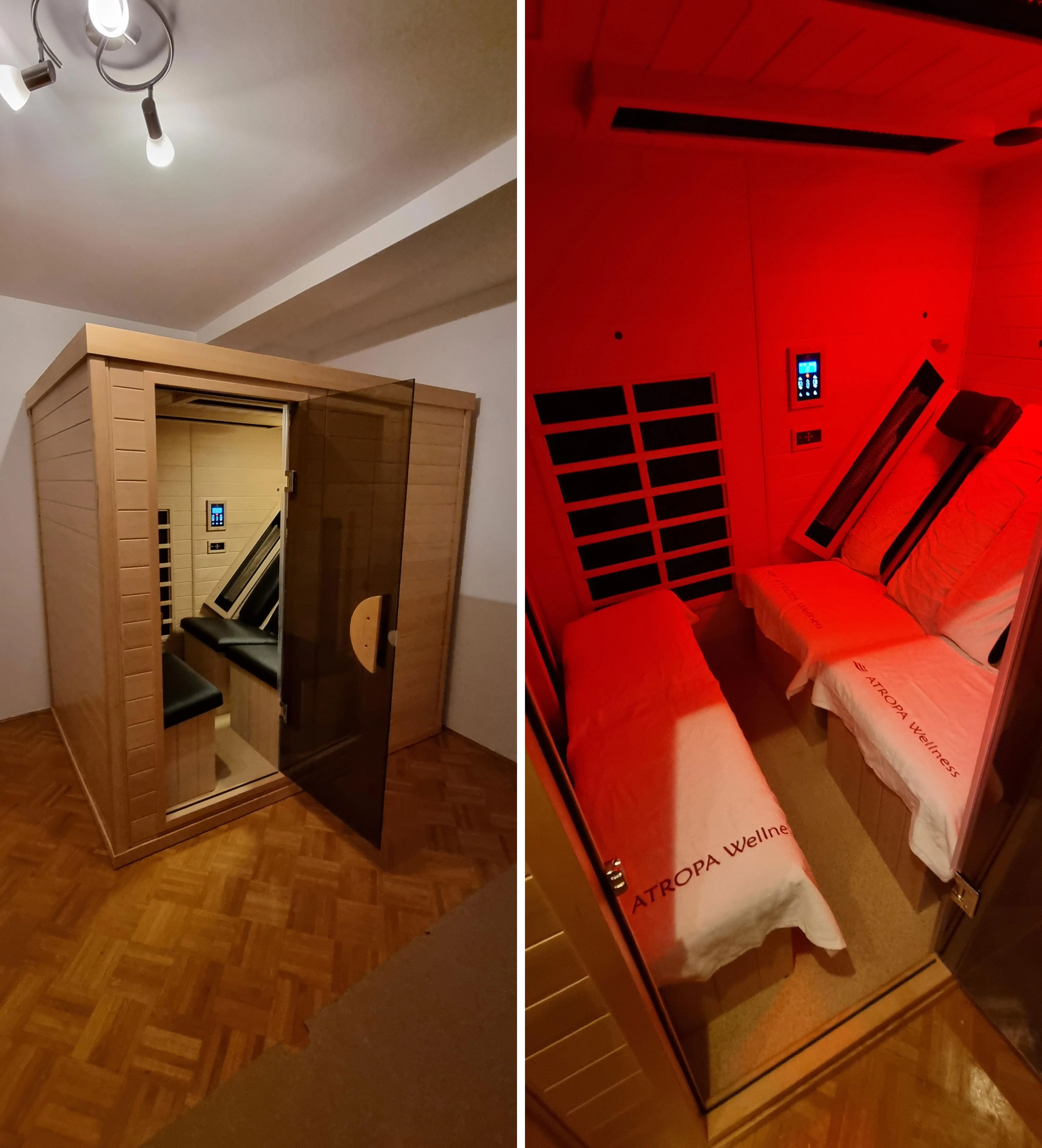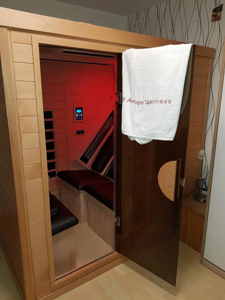 Bei der Suche im Internet sind wir auf Atropa gestoßen. Aufgrund Preis-Leistungsverhältnis und Optik sowie Größe und Ausstattung haben wir uns schlussendlich für Atropa entschieden. Umgehend nach der Bestellung/Überweisung wurden wir kontaktiert und wir konnten die Lieferung kaum erwarten. Die Infrarotkabine wurde rasch zugestellt und auch die Montage zu zweit (ca. 4 Std.) hat sehr gut funktioniert. Also alles bestens! Natürlich haben wir die Infrarotkabine noch am gleichen Abend getestet. Wellness zu Hause - ein Traum! Es ist wirklich sehr wohltuend nach einer anstrengenden Sporteinheit, verwenden gerne P1 mit Lichttherapie + Musik! Anfangs haben wir gezweifelt, ob ohne Armlehne zu wenig Platz sein könnte. Aber das ist zum Glück nicht der Fall, die Kabine bietet genügend Platz für zwei. Bis jetzt gibt es nichts zu bemängeln. Wir genießen die Zeit beim Relaxen!
