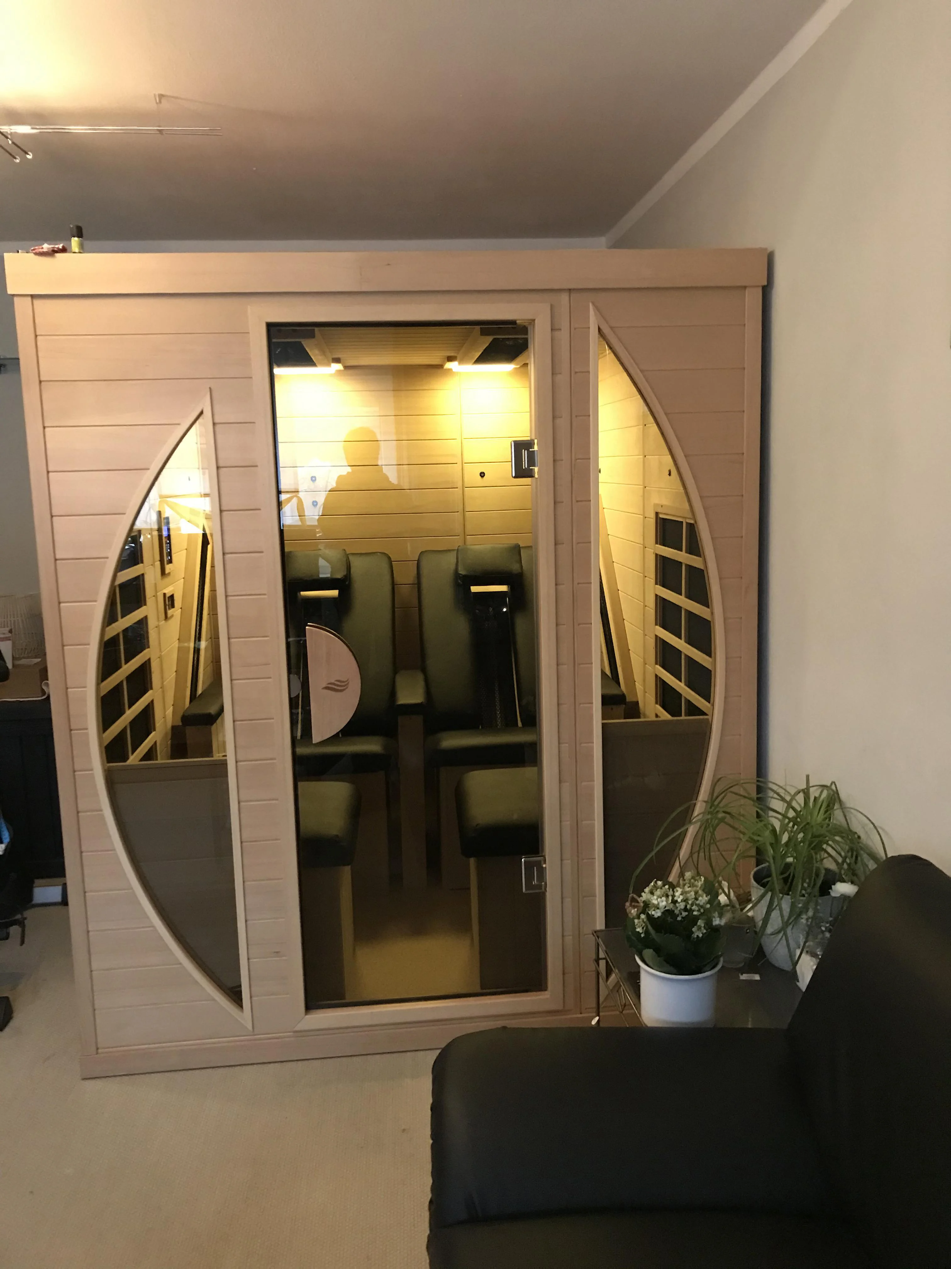 Wir waren auf der Suche nach einer Infrarotkabine zum Liegen -- für 2 Personen. Leider war alles was wir uns ansahen nicht das, was wir suchten. Also suchten wir im Internet und fanden die wunderbare Kabine mit 2 gleichen Liegen und zusätzlich noch einem Sitzplatz. Wir sind sehr begeistert von der Lieferung, Montage und natürlich dem Gebrauch der Kabine. Man kann herrlich entspannen und sind total froh mit unserer neuesten " Errungenschaft" Wir können die Kabine nur weiterempfehlen.