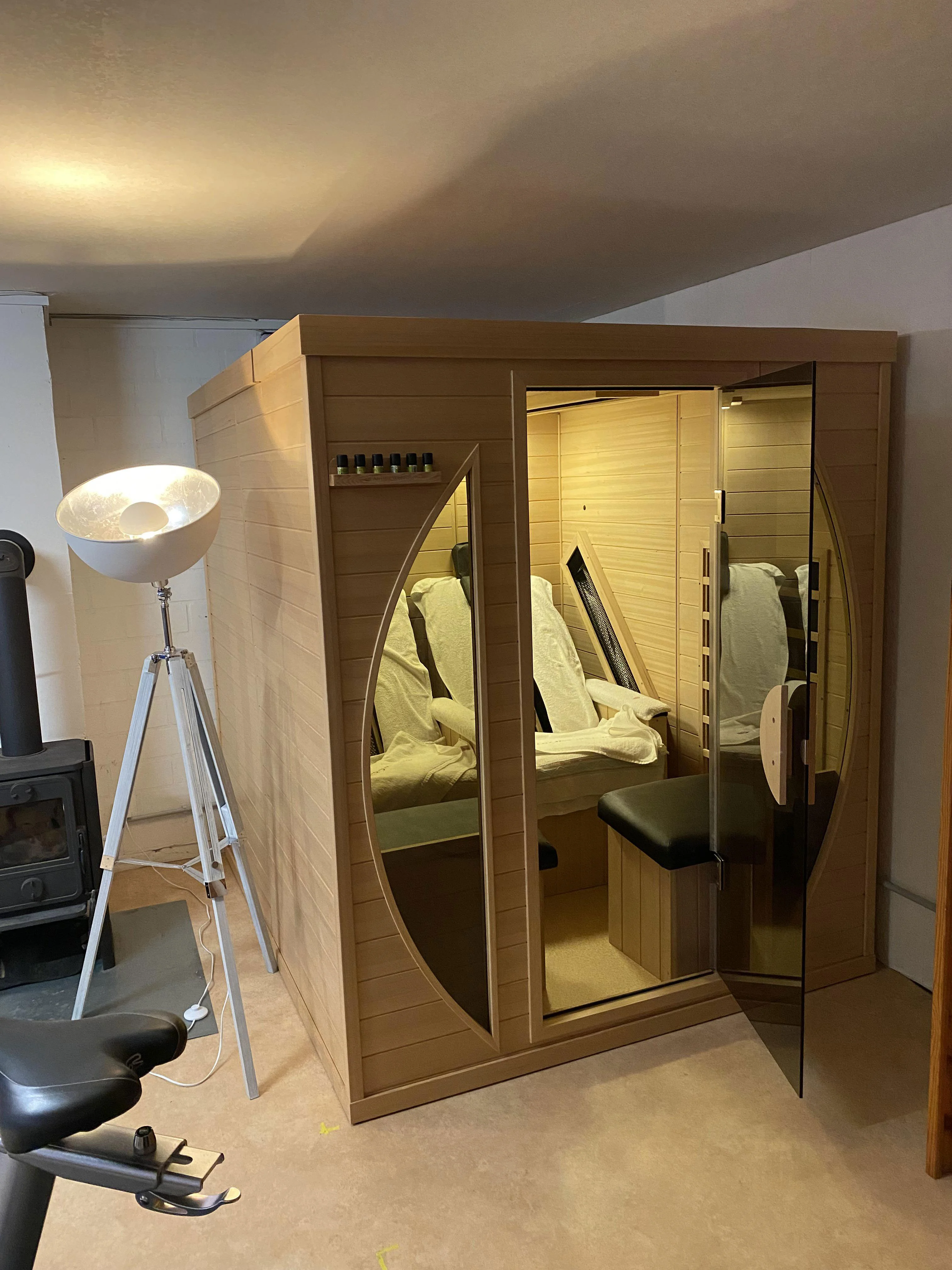 Tolle Infrarotkabine. War sehr einfach aufzubauen und man liegt super gemütlich auf den tollen Liegen. Ei, super Erlebnis, total entspannend, vor allem nach dem Sport!