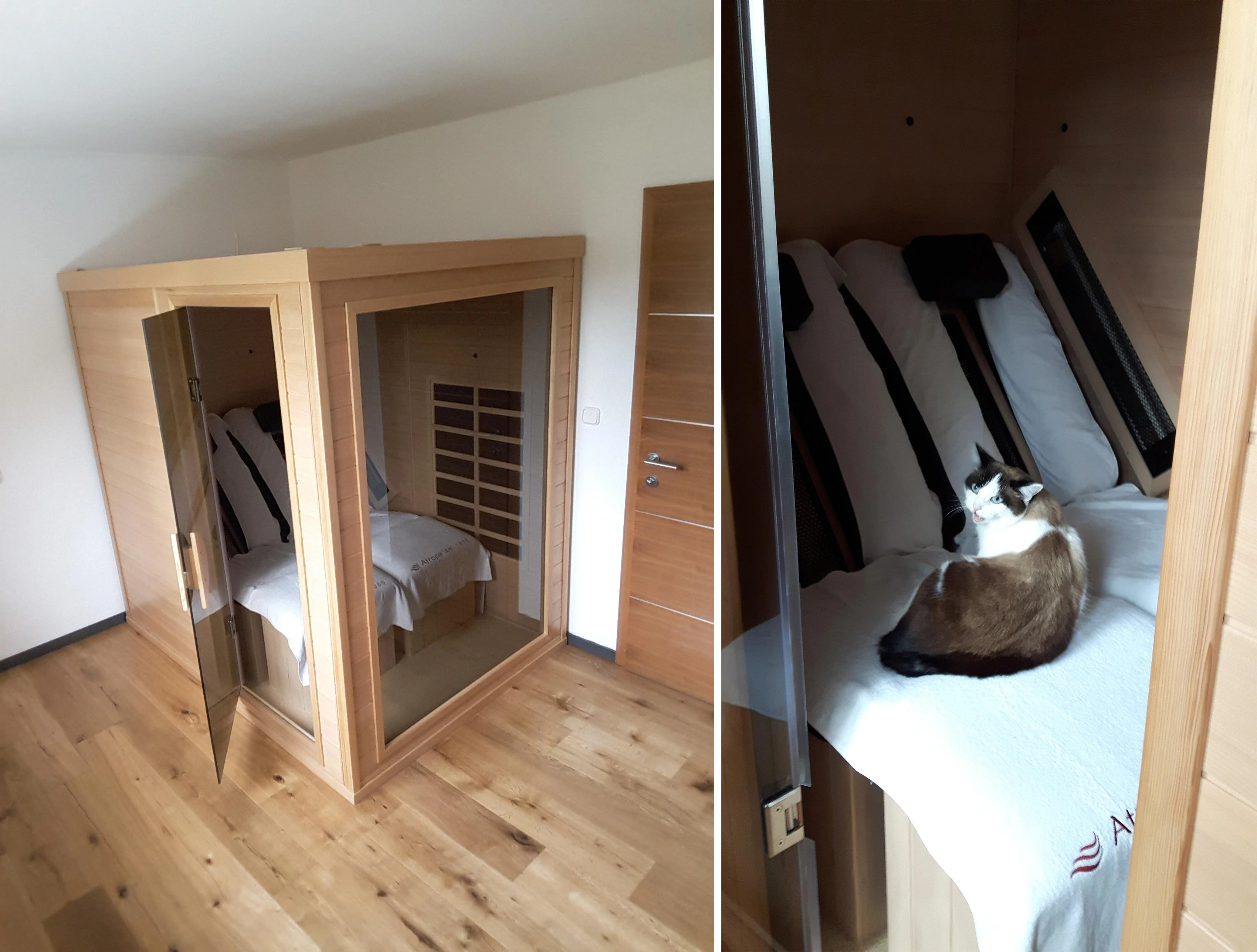 Wir wollten uns nur Informieren und waren von der Kabine und der Beratung sofort begeistert! Die Kabine wurde rasch und unkompliziert geliefert und am Dachboden aufgestellt. Es hat alles gut funktioniert und wir sind sehr zufrieden und glücklich mit unserer Entscheidung! Die Liegen sind sehr bequem! Die Musikanlage hat einen hervorragenden Klang. Wir können die Firma Atropa nur weiterempfehlen!