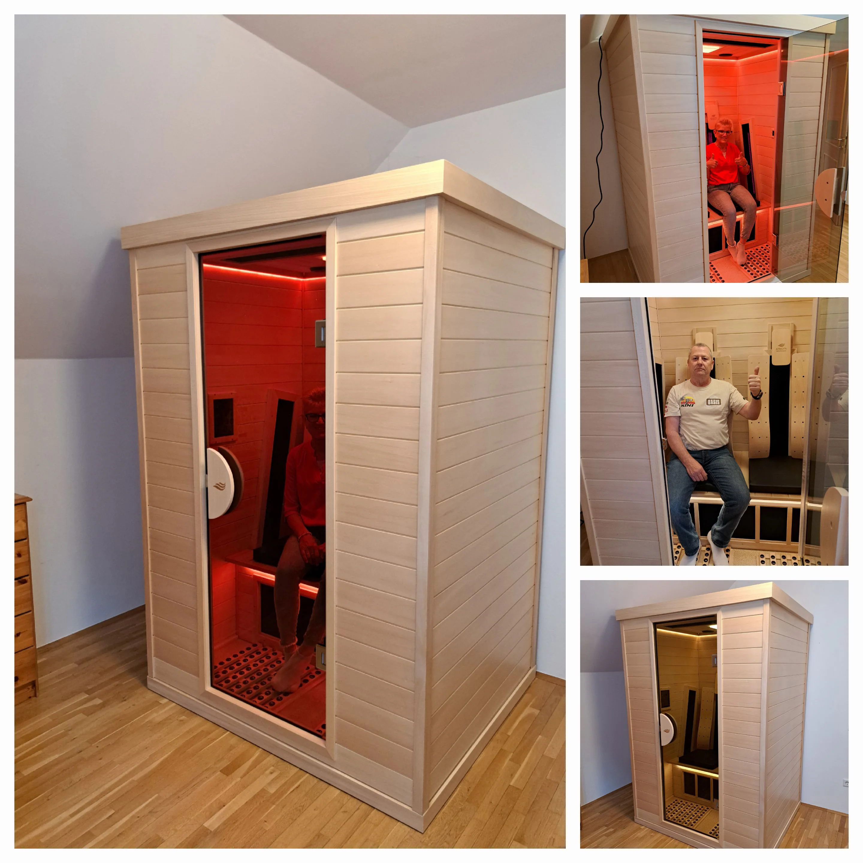 Wir waren zum Bestellen in Wien, wurden hervorragend beraten und konnten bereits eine Woche später die Infrarotkabine aufstellen. Zu zweit haben wir ca 4 Stunden gebraucht. Die Beschreibung ist gut verständlich, so dass es kein Problem war. Das Tablett ist leicht zu bedienen, die Musik lässt sich ebenfalls leicht einstellen. Die Strahler haben uns auch vollkommen begeistert. Da wir zu zweit sind, tauschen wir nach der Hälfte der Zeit die Plätze damit auch die Seiten gleichmäßig bestrahlt werden. Wir sind rundum zufrieden.