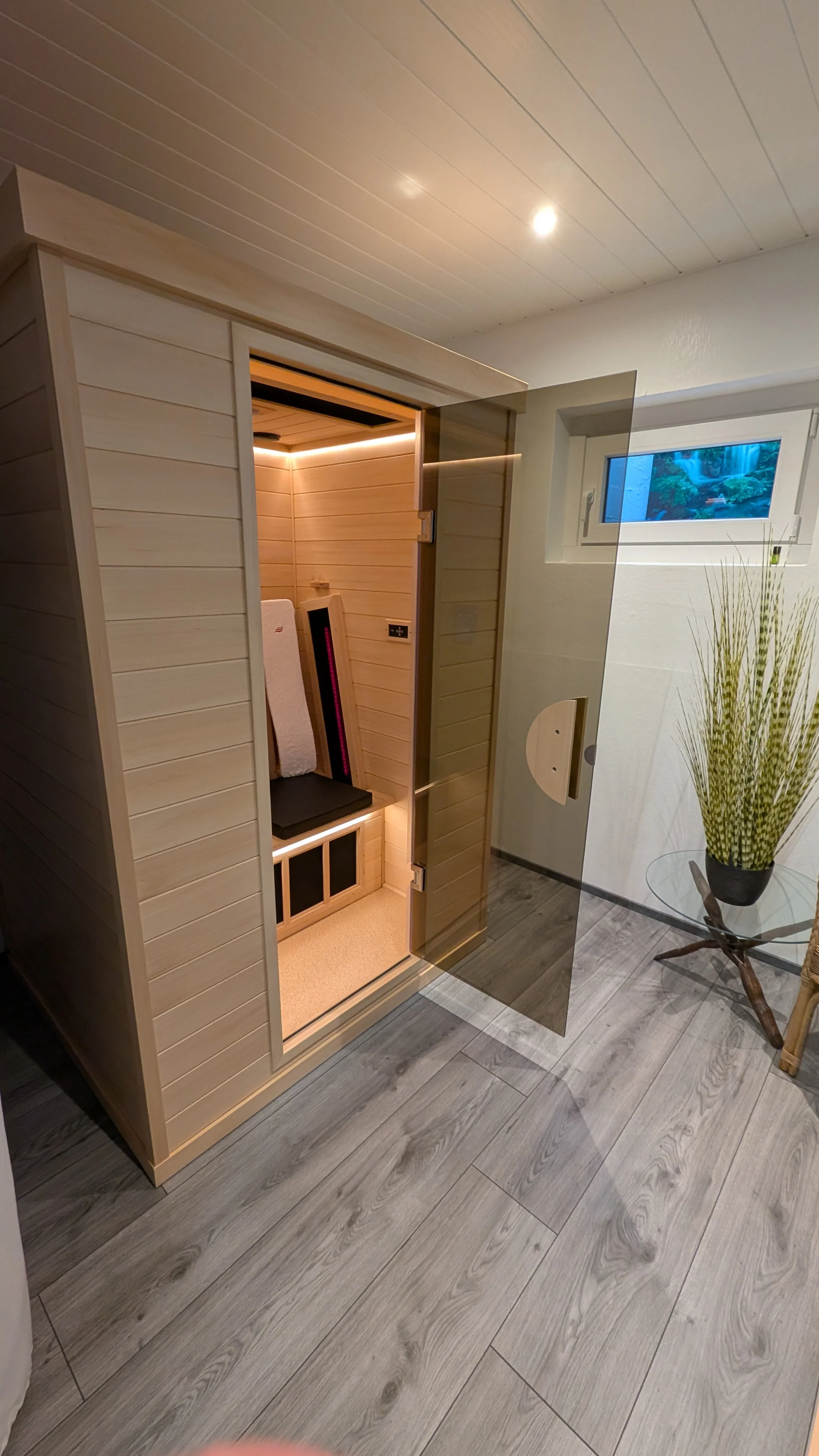Nach intensiver Recherche haben wir uns für die Atropa ATX-2 entschieden – und es war definitiv die richtige Wahl! Die Lieferung erfolgte genau zum Wunschtermin, was wir sehr geschätzt haben. Der Aufbau war überraschend einfach: In weniger als zwei Stunden stand die Kabine einsatzbereit – und das, obwohl wir kein besonderes handwerkliches Geschick haben. Alle Teile waren passgenau verarbeitet und die Anleitung war leicht verständlich. Seit der Inbetriebnahme nutzen wir die Kabine regelmäßig und sind absolut überzeugt von unserer Entscheidung. Die Wärme ist angenehm, die Bedienung intuitiv dank des Tablet-Display, und das gesamte IR-Erlebnis ist genau das, was wir uns erhofft haben.