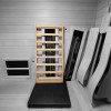 Die mobile ergonomische Rückenlehne ist nicht nur bequem, sondern entlastet auch die Wirbelsäule. Gerade bei Infrarotkabinen ohne fix eingebaute oder flexible ergonomische Rückenlehne unterstützt sie das entspannte Saunieren. Die Neigung kann dabei ganz einfach den eigenen Bedürfnissen angepasst werden.