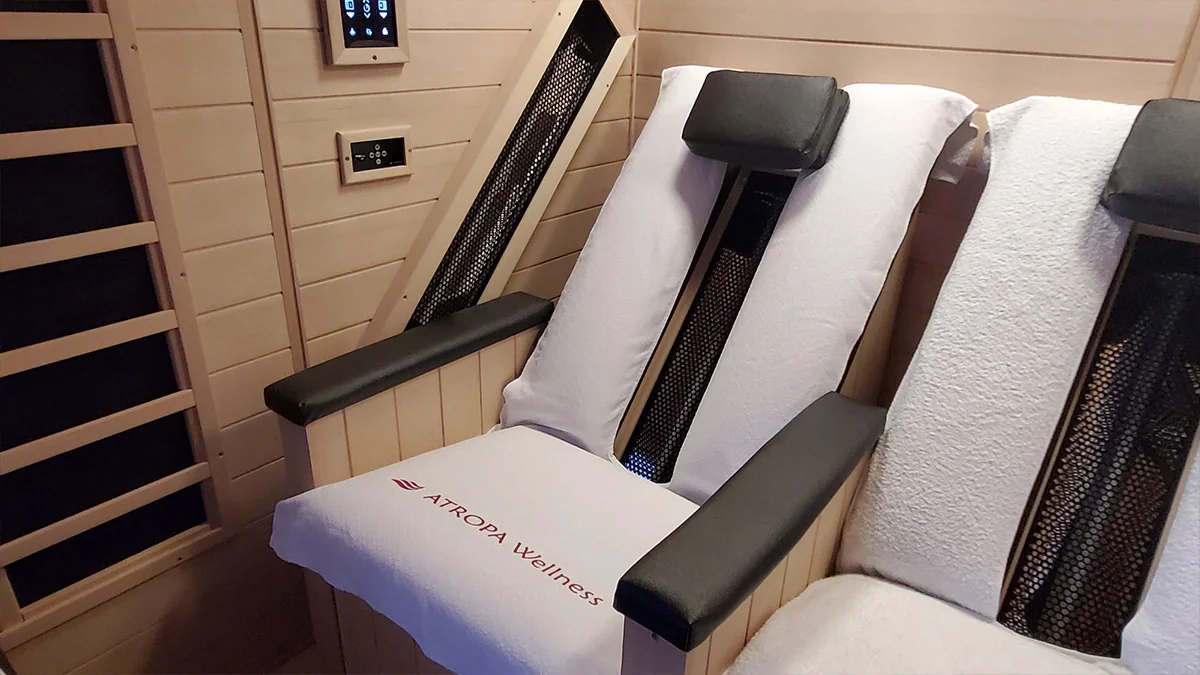 Das ATROPA Relax Saunatuch wurde speziell entwickelt, um den Schweiß aufzufangen, aber gleichzeitig die unterbrechungsfreie Tiefenwärme-Infrarotbestrahlung nicht zu behindern. Ermöglicht wird dies durch eine angepasste Aussparung im Bereich des Rückenstrahlers.